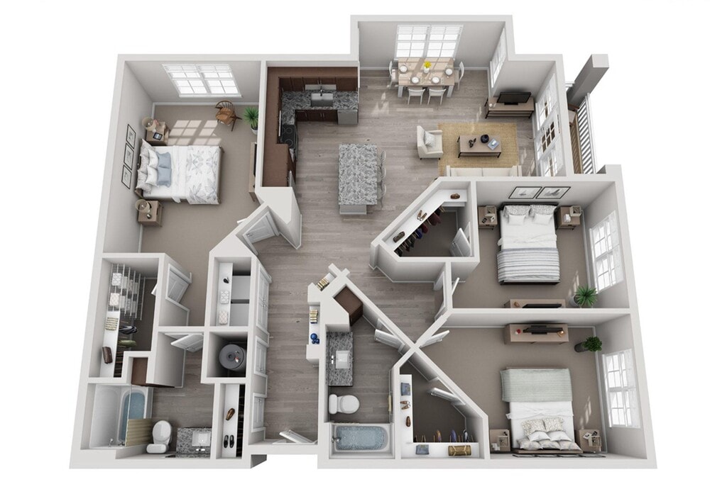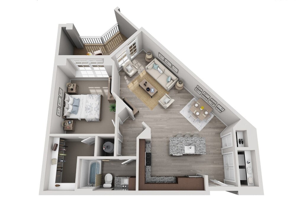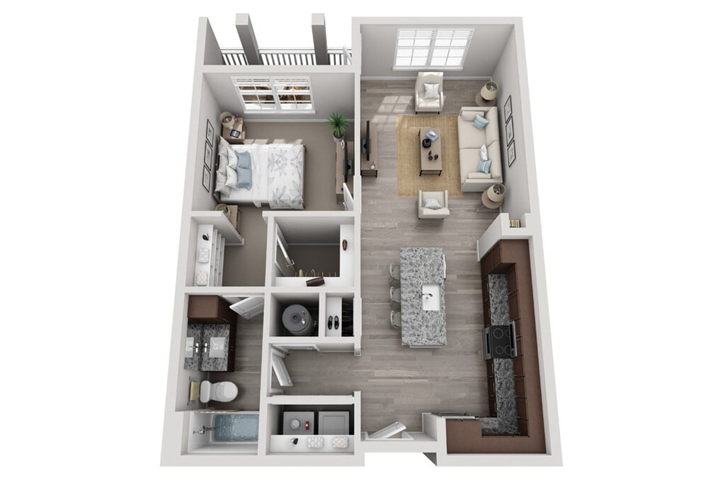 Modelo de apartamento: A3Desde $1,6261 Dormitorio, 1 Baño, 757 sq ftDisponible March 19, 2026![]()