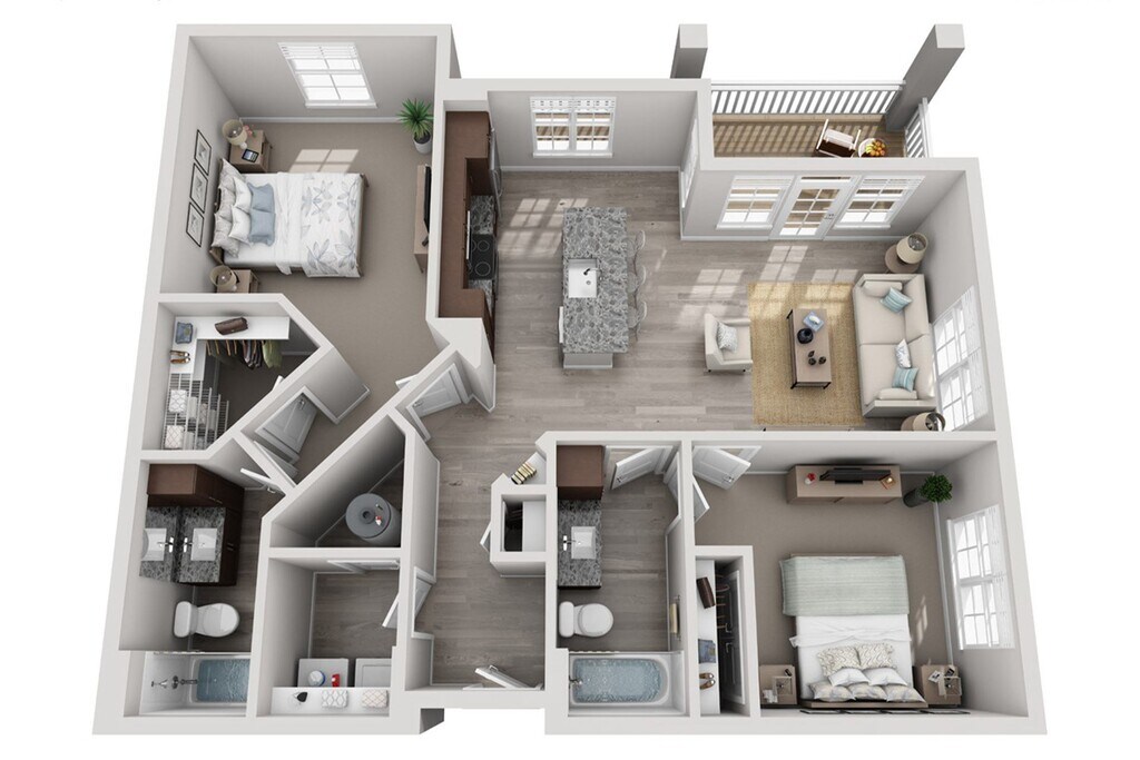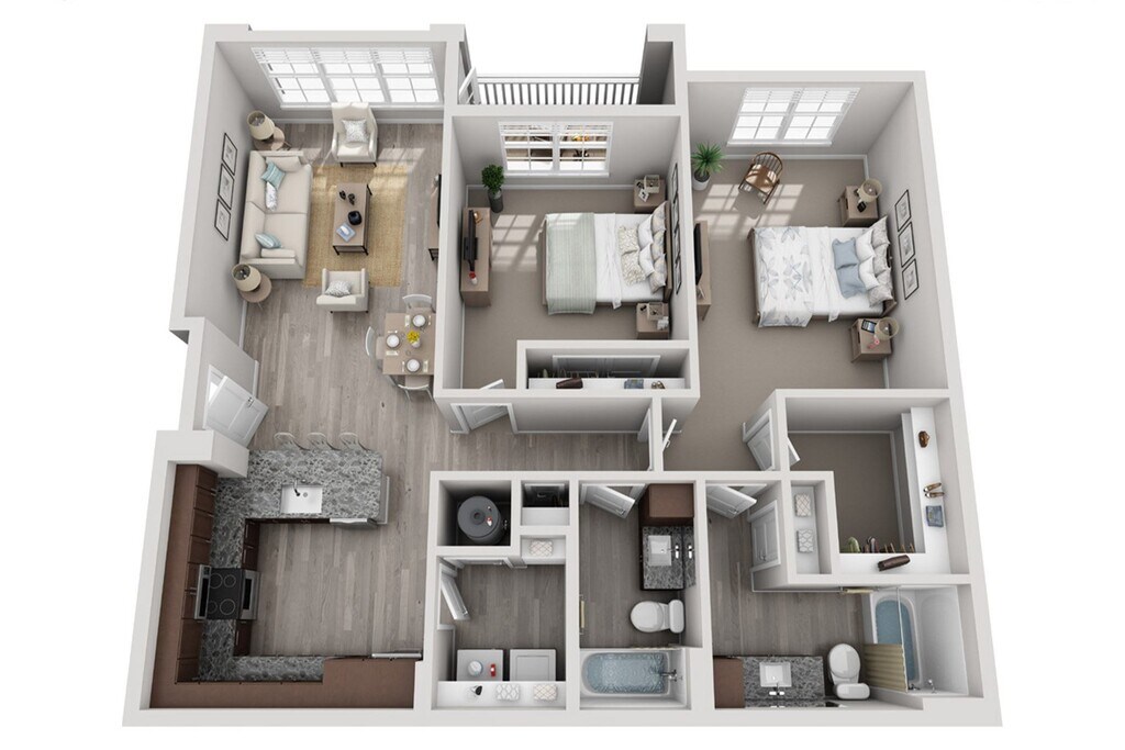 2 Dormitorios, 2 Baños, 1069-1087 pies²Disponible AhoraGalería del Modelo