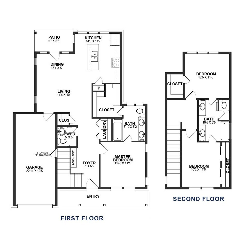 2 Dormitorios, 2.5 Baños, 1001 pies²Disponible AhoraGalería del Modelo