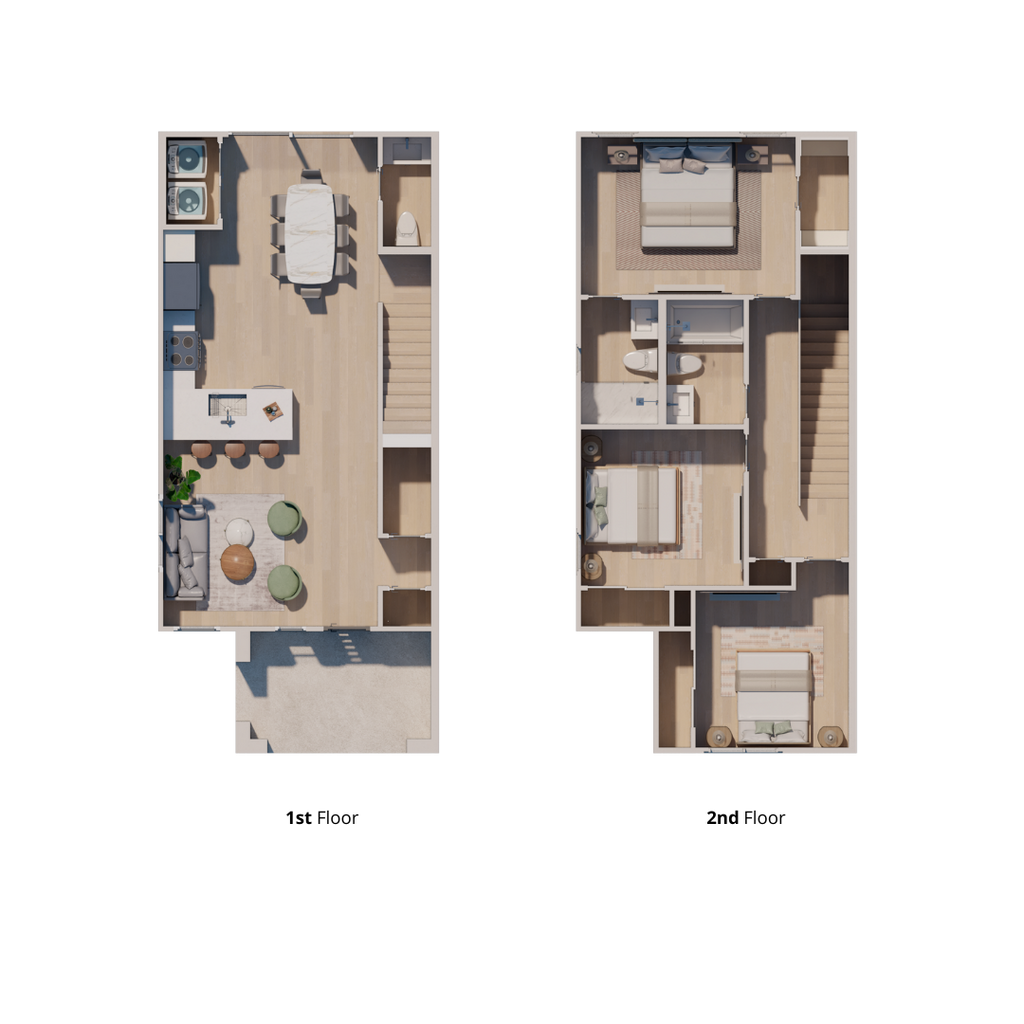 3 Dormitorios, 2.5 Baños, 1202 pies²Disponible AhoraGalería del Modelo