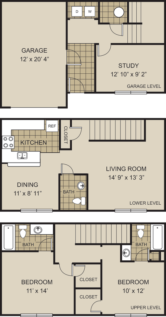 Modelo de apartamento: A1- TownhomeDesde $1,1871 Dormitorio, 1 Baño, 768 sq ftDisponible Ahora![]()