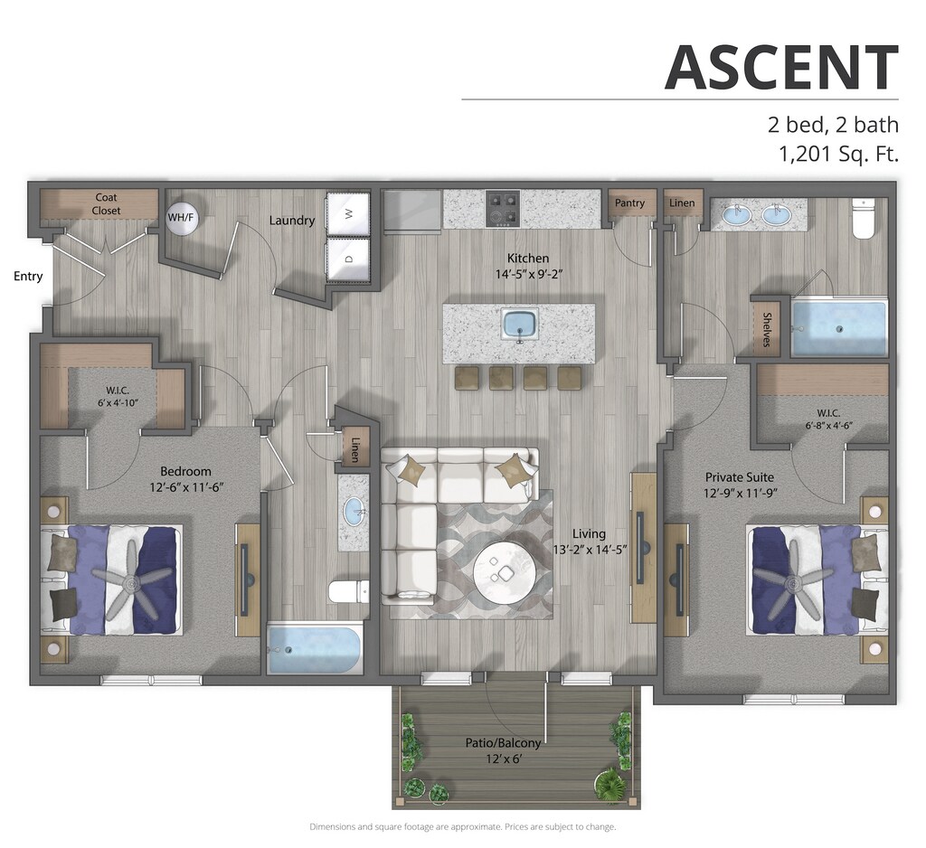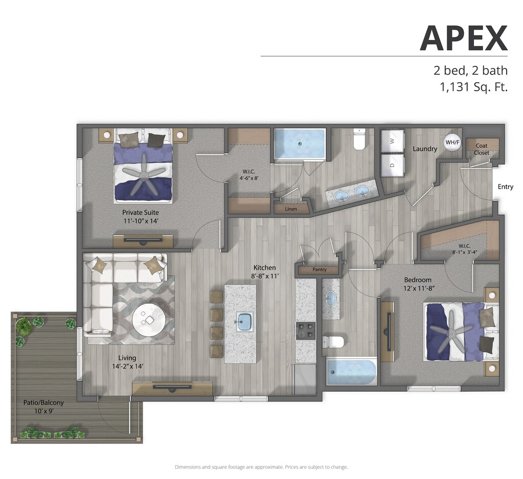 Modelo de apartamento: ApexDesde $1,8502 Dormitorios, 2 Baños, 1131 sq ftDisponible AhoraPlanosFotos![]()
