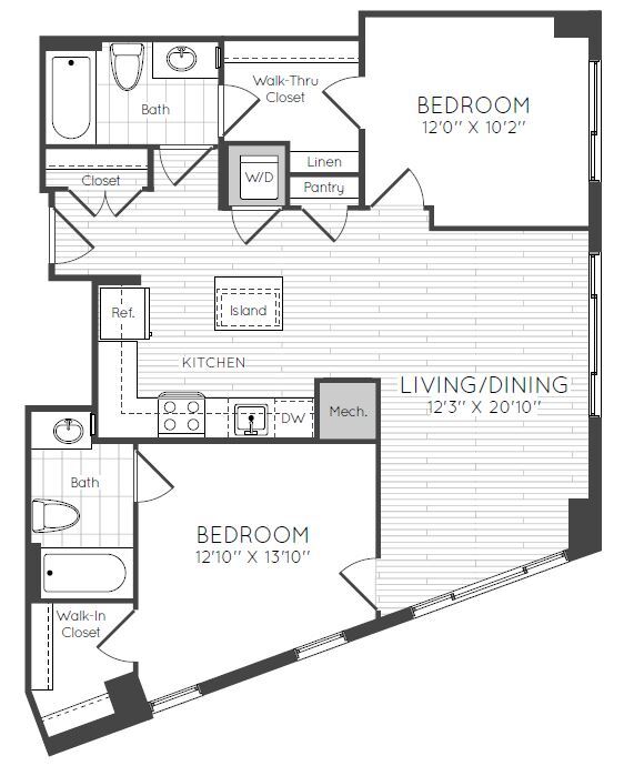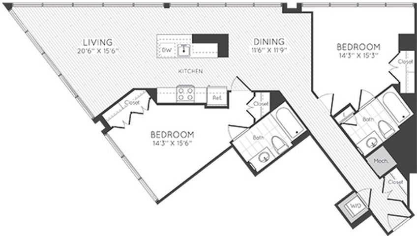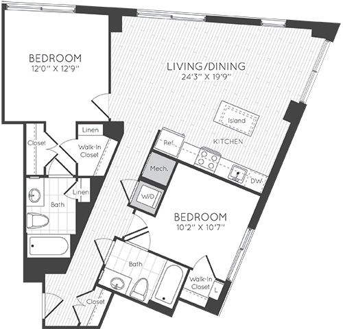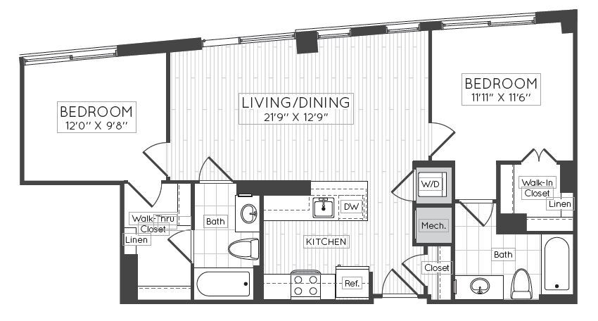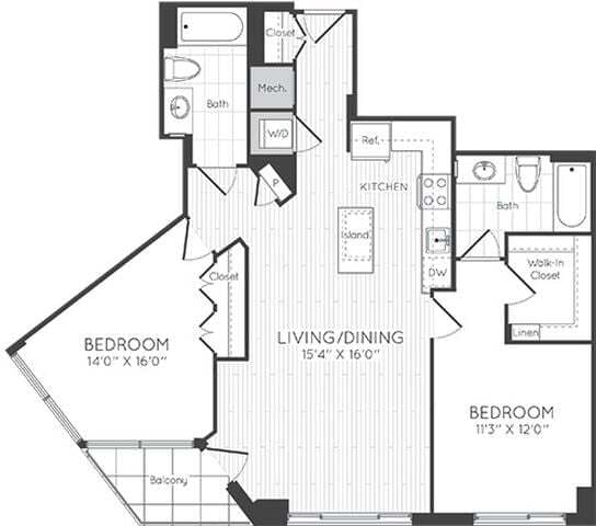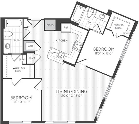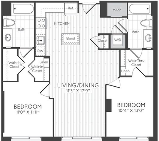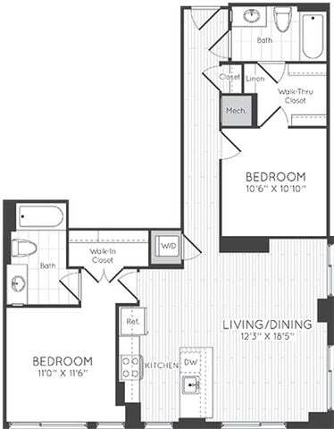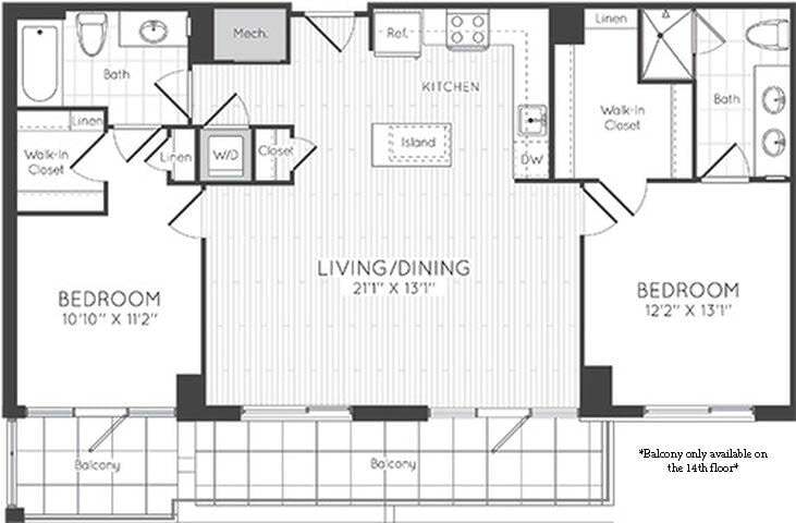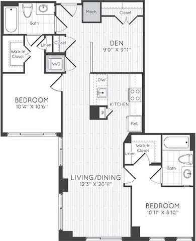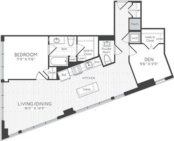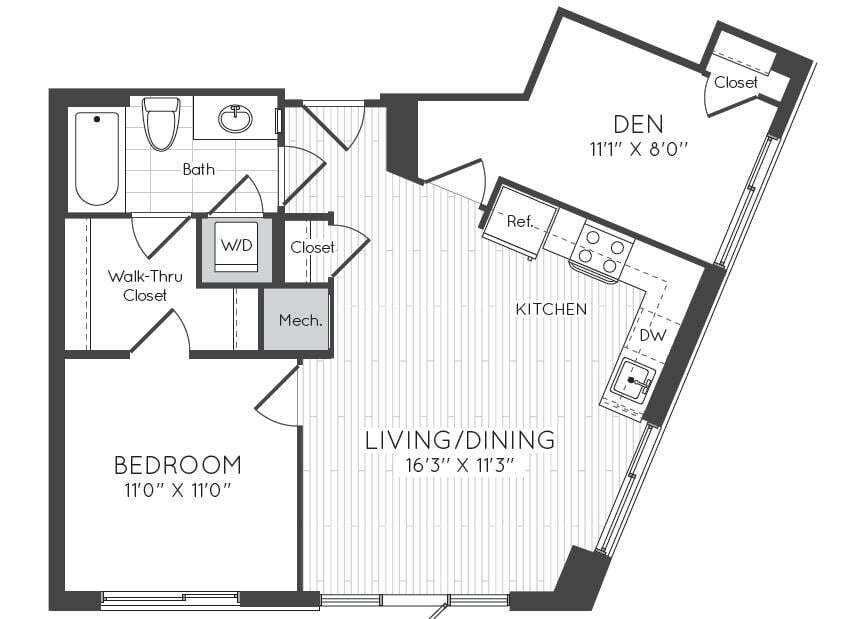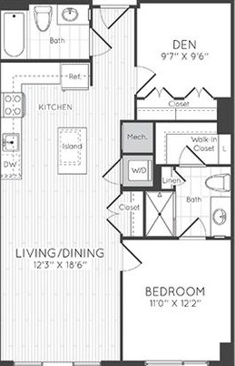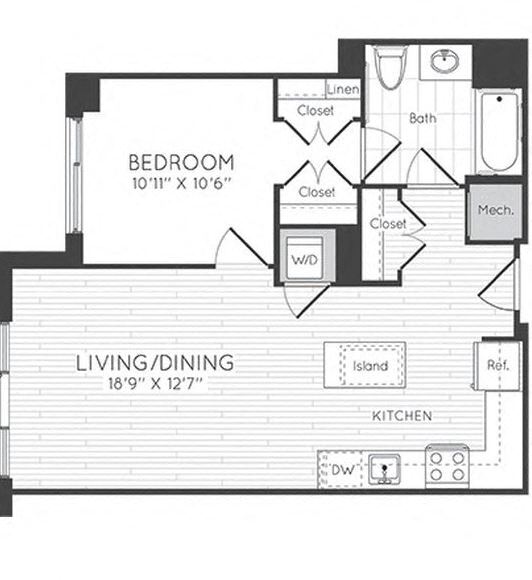 1 Dormitorio, 1 Baño, 595 pies²Disponible AhoraGalería del Modelo