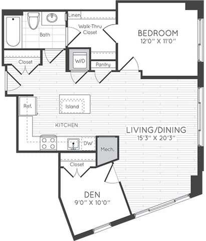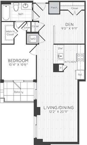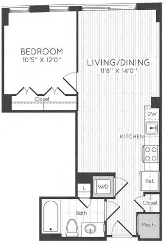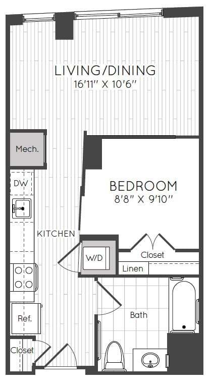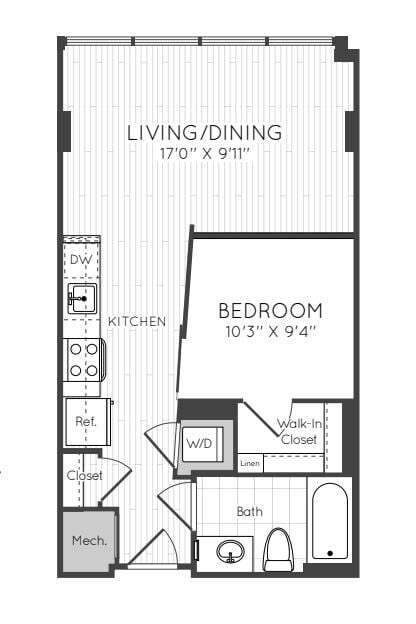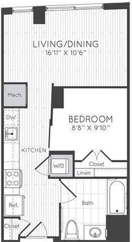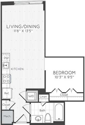 Studio - Plano 1 Unidad de apartamento: 0428Modelo de apartamento: Studio$2,068Estudio, 1 Baño, 545 sq ftDisponible November 15, 2025Studio