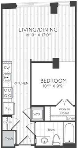 Modelo de apartamento: StudioLlame para PreciosEstudio, 1 Baño, 481 sq ftNo Disponible![]()