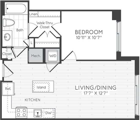 Estudio, 1 Baño, 545 pies²Disponible AhoraGalería del Modelo