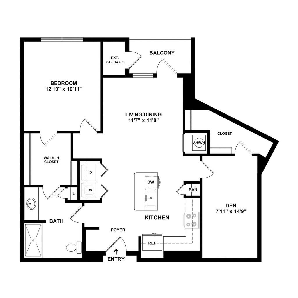 Modelo de apartamento: A4 w/Den$2,6701 Dormitorio, 1 Baño, 900 sq ftDisponible Ahora![]()