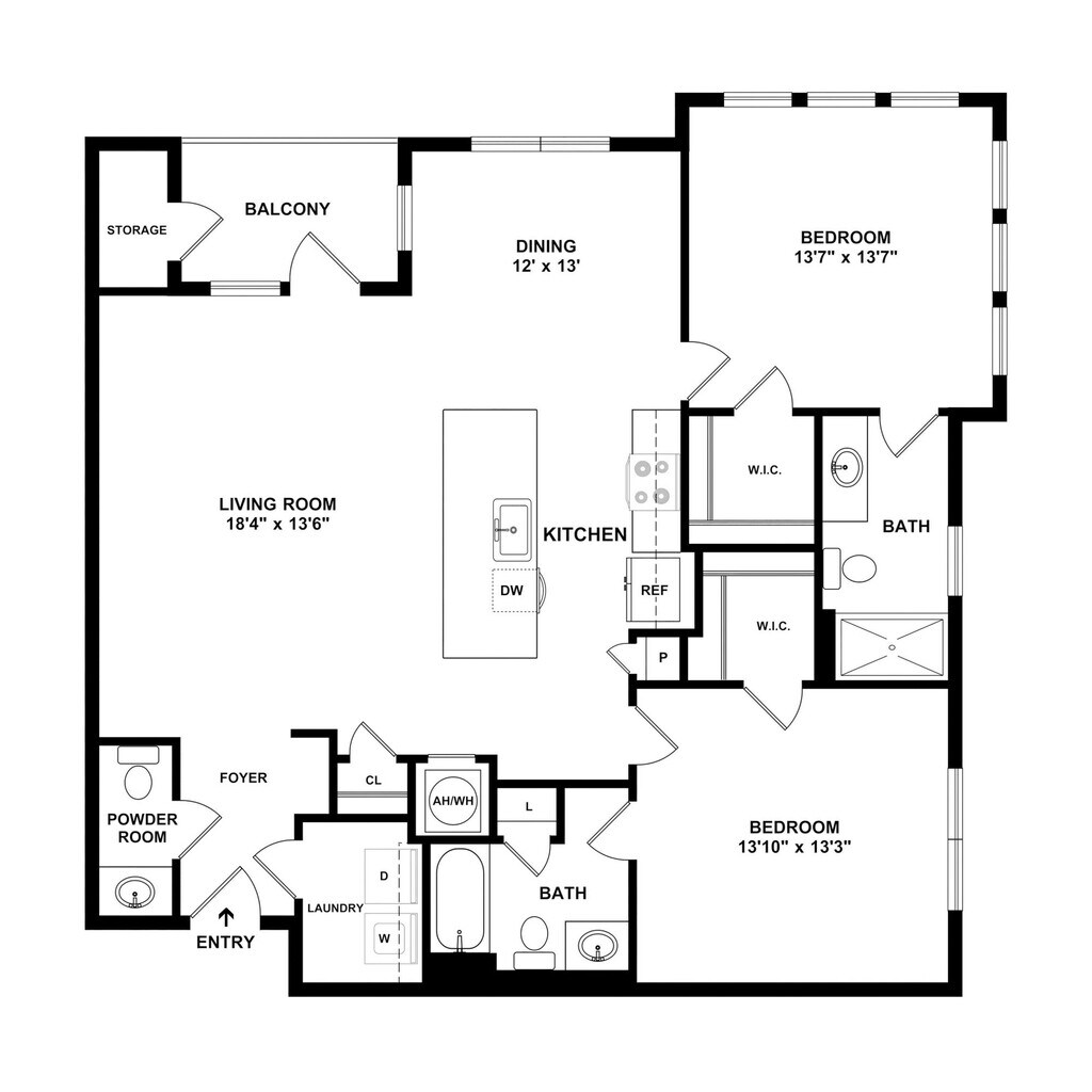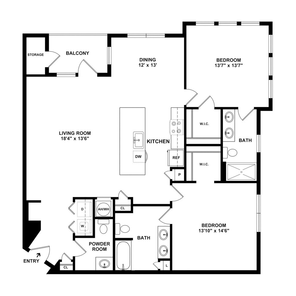 Modelo de apartamento: A2Desde $2,3601 Dormitorio, 1 Baño, 789 sq ftDisponible Ahora![]()
