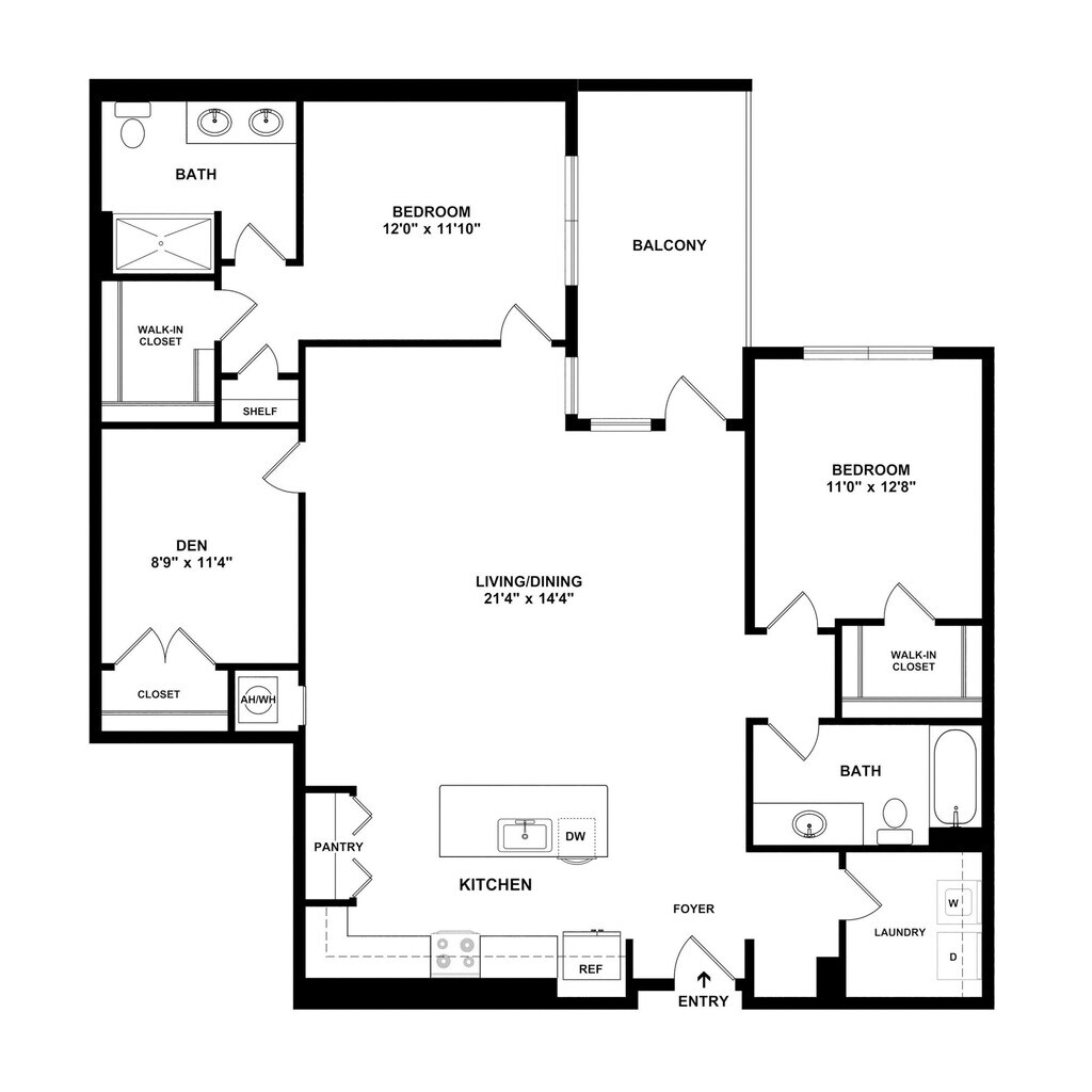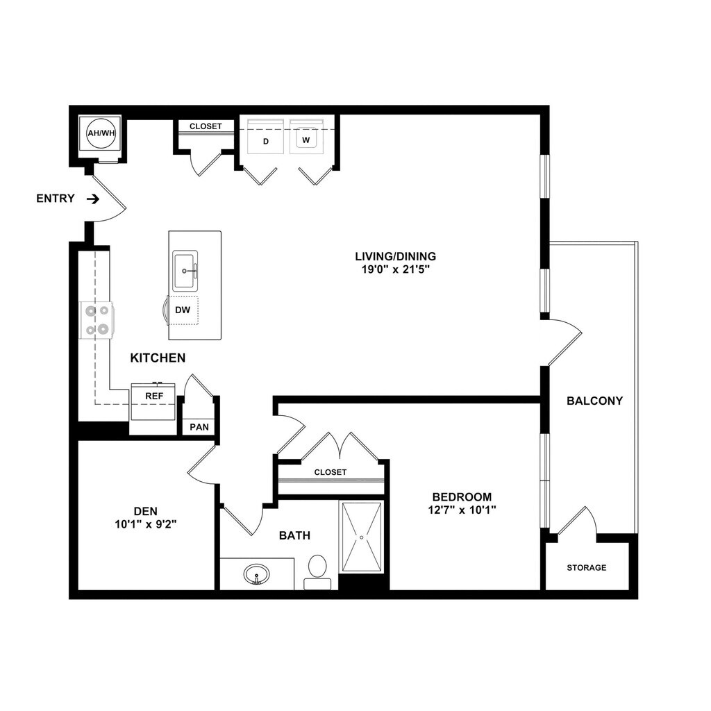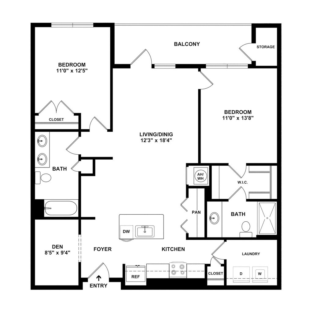 Modelo de apartamento: A5 w/DenDesde $2,6701 Dormitorio, 1 Baño, 932 sq ftDisponible Ahora![]()