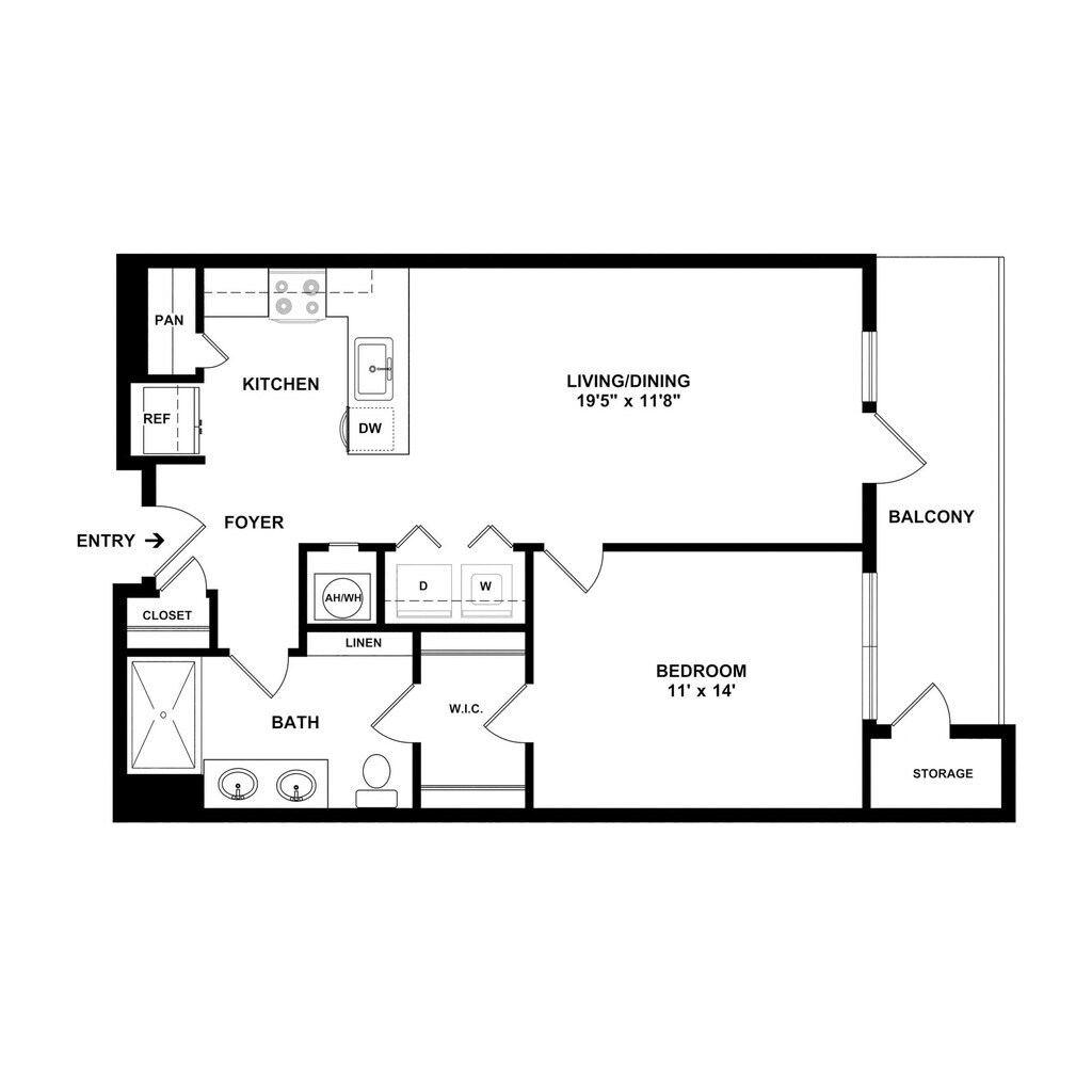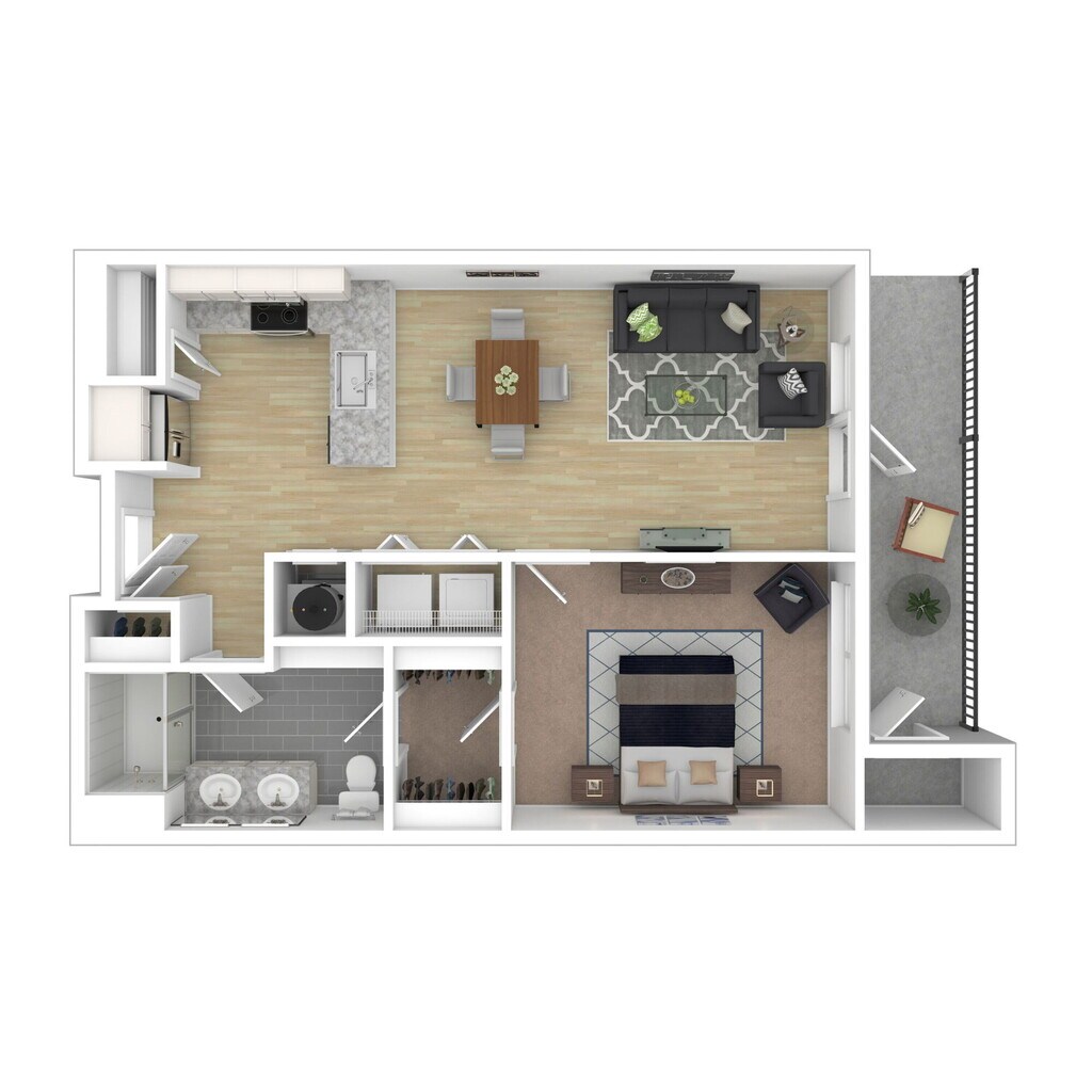 1 Dormitorio, 1 Baño, 789 pies²Disponible AhoraGalería del Modelo