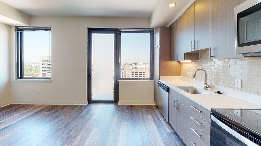 October 9, 2015From the front door to the metro rail station and newly opened transit center it is about a two blocks walk. I can see both from my bedroom window! It is very easy to get to public transit (although I admit you are walking up hill a little when you come home, I say that for those that may have trouble walking). With so many options, rail via the red line and all of the bus routes in the transit center, you can get to much of the metro area. The units have nice wood laminate floors, space ...saving with some doors being pocket doors, and best yet a washer and dryer in the unit. There are lots of dogs in the building so it is very pet friendly. It is also very convenient to have the front desk there to take packages during the day. This even includes when places like Amazon deliver things on weekends. The only small kink is the learning curve on the energy efficient items like the thermostat and lighting (it appears to be CFL or something like that). But that is very small compared to all of the conveniences!Leer MásReseña de Apartments.com