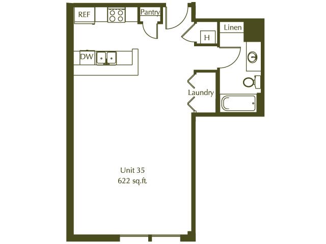 Estudio, 1 Baño, 622 pies²Galería del Modelo