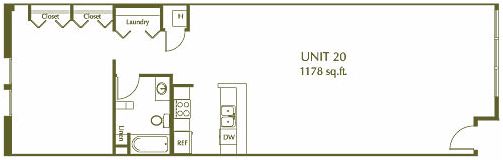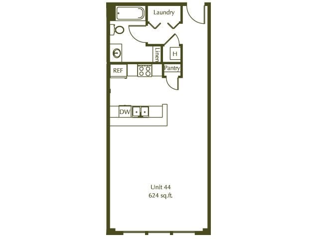 Estudio, 1 Baño, 624 pies²Galería del Modelo