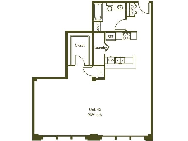 Estudio, 1 Baño, 969 pies²Galería del Modelo