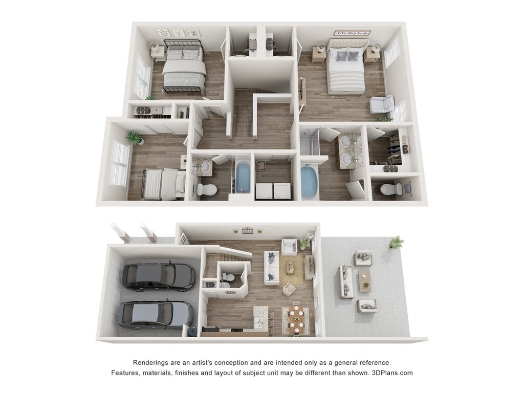 C2 - Plano Unidad de apartamento: 7517Modelo de apartamento: C2Desde $1,7993 Dormitorios, 2.5 Baños, 1555 sq ftDisponible Ahora