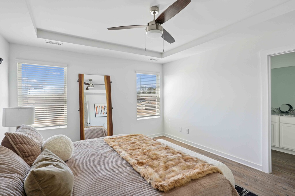 Bienvenido a Elio at Research Park, el excelente complejo de casas adosadas en alquiler de Huntsville, donde la vida moderna se combina con la comodidad en el corazón de Alabama. Nuestra nueva construcción ofrece amplias casas adosadas de 3 habitaciones y 2.5 baños diseñadas para elevar tu estilo de vida. Cada casa adosada en Elio cuenta con un garaje adjunto para 2 automóviles, lo que proporciona estacionamiento seguro y un amplio espacio de almacenaje. En el interior, descubrirás un refugio de lujo con encimeras de granito, accesorios modernos y elegantes, y hermosos pisos de madera noble que fluyen a la perfección en todos los espacios de estar.