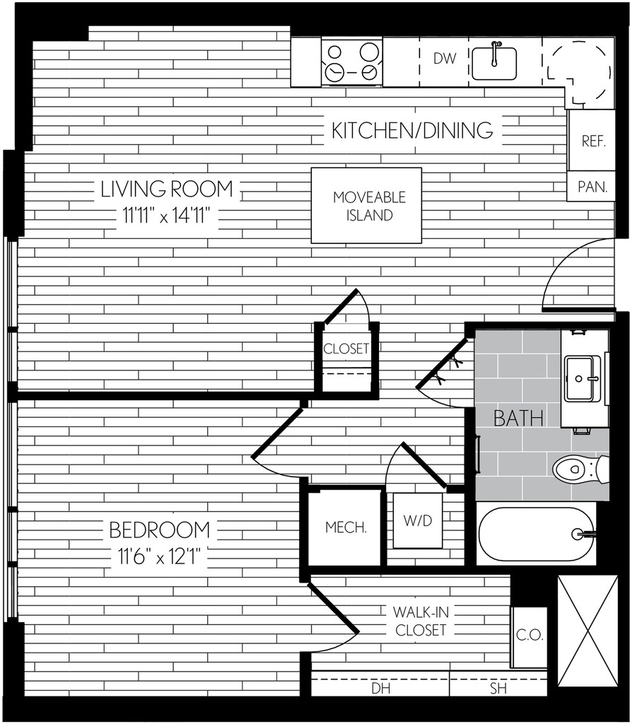 A13 - Plano 1 Unidad de apartamento: 0315Modelo de apartamento: A13Desde $2,3341 Dormitorio, 1 Baño, 744 sq ftDisponible AhoraA19D