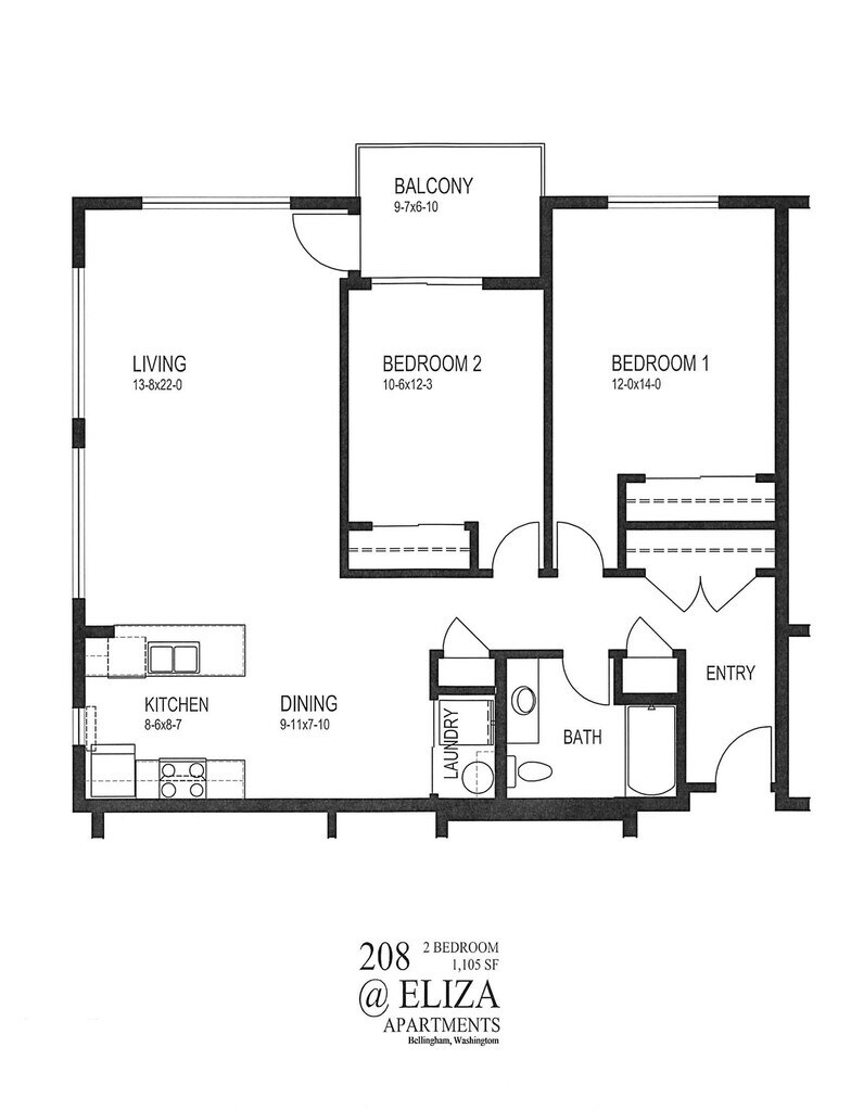 2 Dormitorios, 1 Baño, 1105 pies²Galería del Modelo