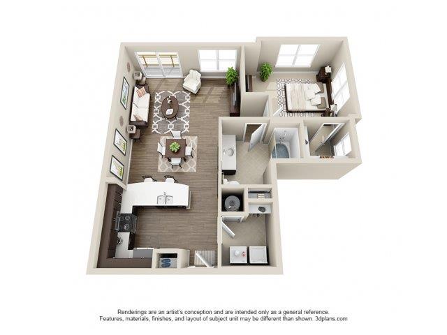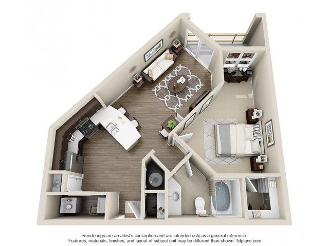 1 Dormitorio, 1 Baño, 659-734 pies²Disponible AhoraGalería del Modelo