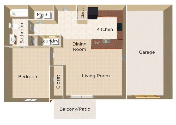 Modelo de apartamento: Bob Cat - Attached GarageLlame para Precios1 Dormitorio, 1 Baño, 780 sq ftNo DisponibleBob Cat - Attached Garage - Plano 1 Coyote