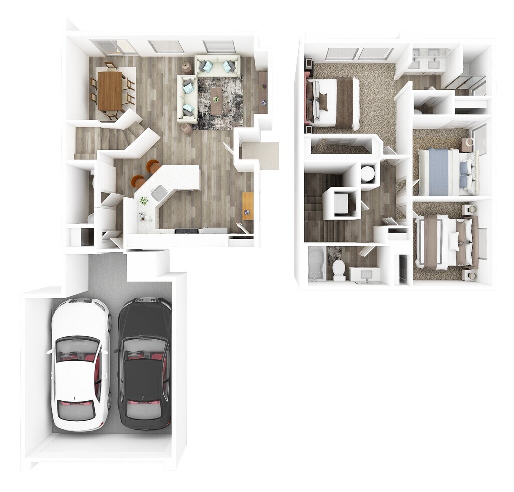 3 Dormitorios, 2.5 Baños, 1600 pies²Precio Mensual TotalDisponible AhoraEl más grandeEsta opción tiene las unidades más grandes para este modeloGalería del Modelo