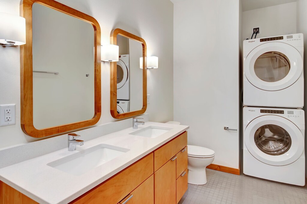 - Paquete completo de electrodomésticos que incluye lavadora y secadora.