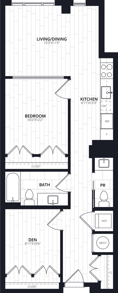 1 Dormitorio, 1 Baño, 675 pies²Disponible AhoraGalería del Modelo