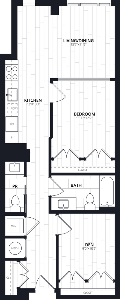 1 Dormitorio, 1 Baño, 791 pies²Disponible AhoraGalería del Modelo