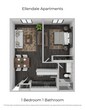 1 Dormitorio, 1 Baño, 500 pies²Galería del Modelo