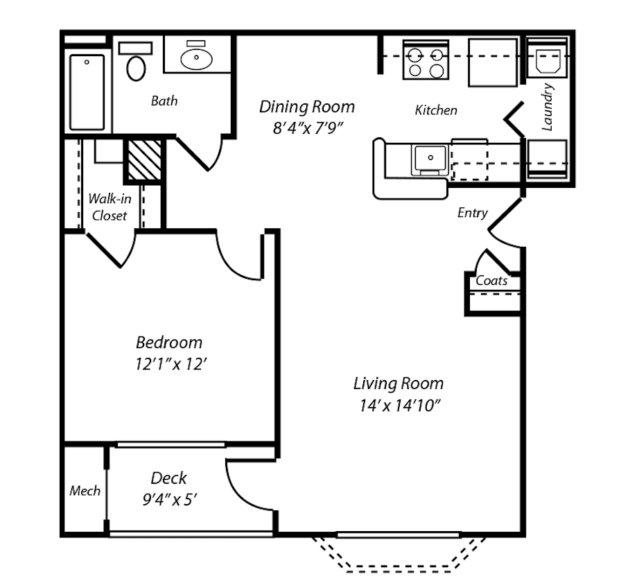 1 Dormitorio, 1 Baño, 1283 pies²Precio Mensual TotalDisponible AhoraEl más grandeEsta opción tiene las unidades más grandes para este modeloGalería del Modelo