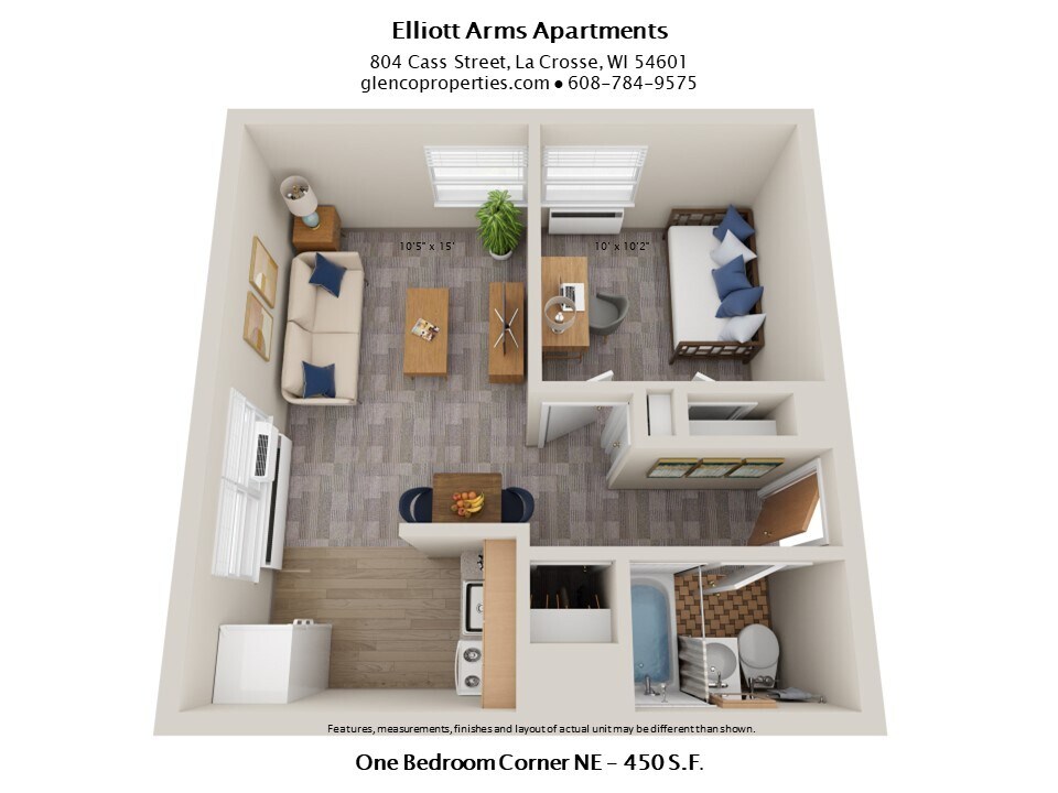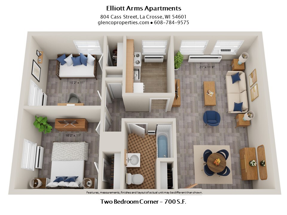Elliott Arms es un complejo de apartamentos clásico de estilo Art Decó de ocho pisos ubicado a una poca distancia a pie de todas las comodidades que el centro de La Crosse tiene para ofrecer. Nuestro limpios y tranquilos estudios y apartamentos de una y dos habitaciones están ubicados convenientemente cerca de dos de los principales centros médicos y tres instituciones de educación superior. Disfruta de una cálida atención personal en un hogar radiante con estilo y personalidad.