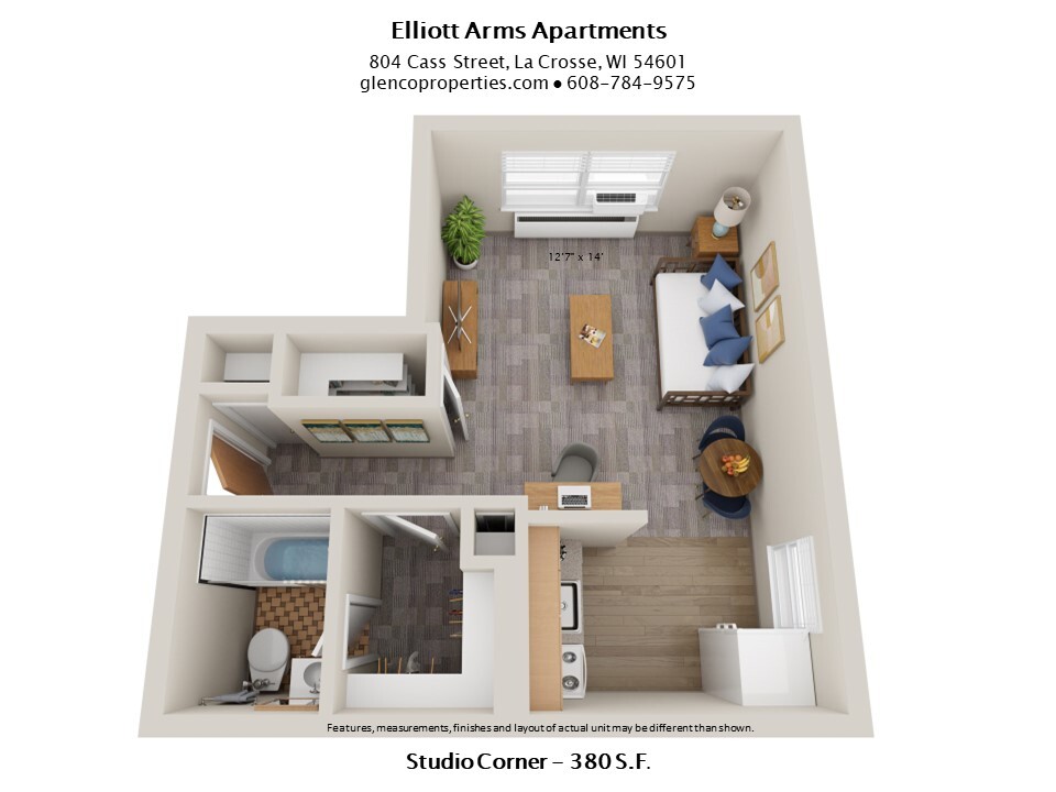 estudio en Elliott Arms Apartments a partir de $1,050. ¡Llámenos para obtener más información!