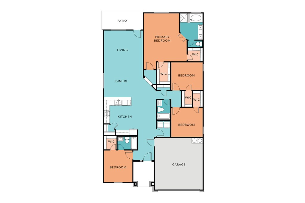 4 Dormitorios, 3 Baños, 2036 pies²El más grandeEsta opción tiene las unidades más grandes para este modeloGalería del Modelo