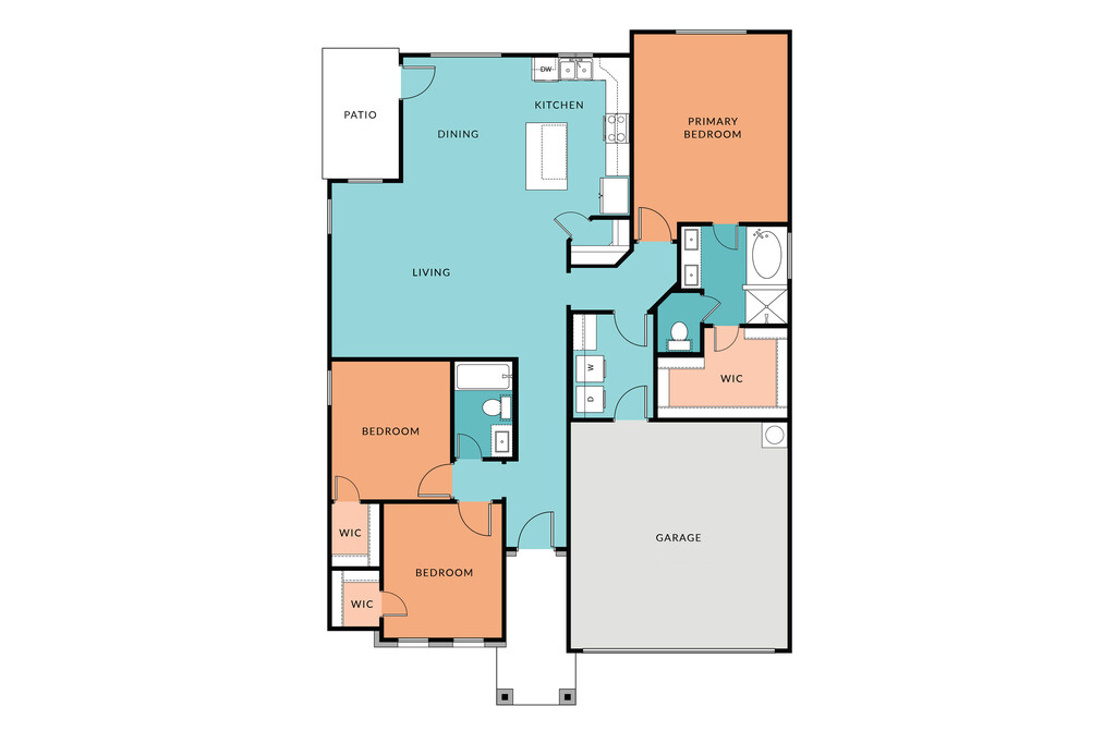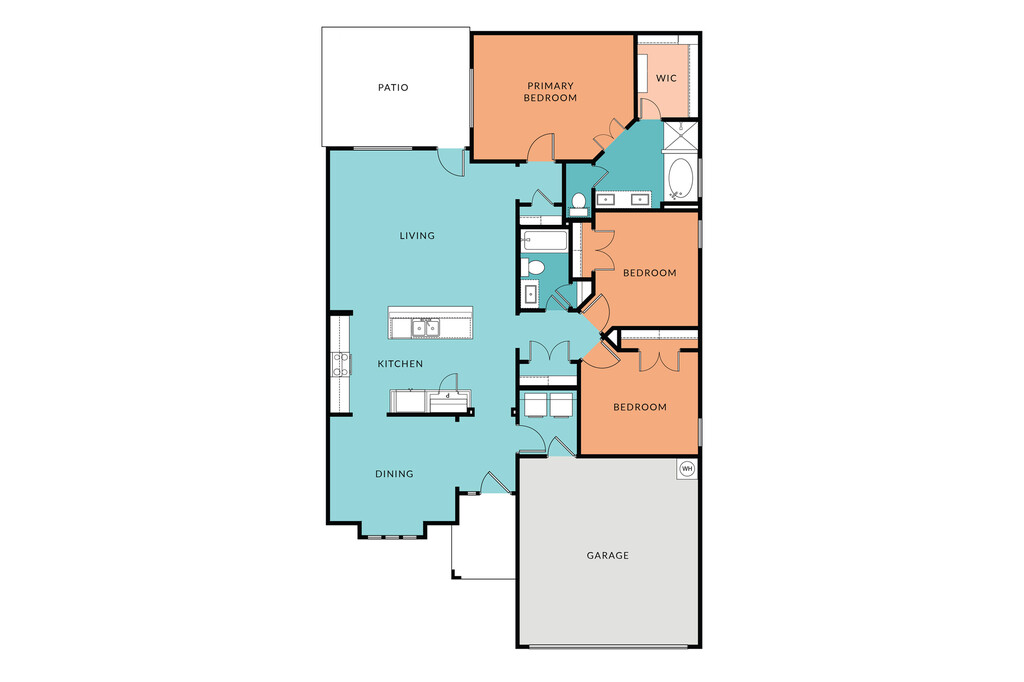 3 Dormitorios, 2 Baños, 1510 pies²Galería del Modelo