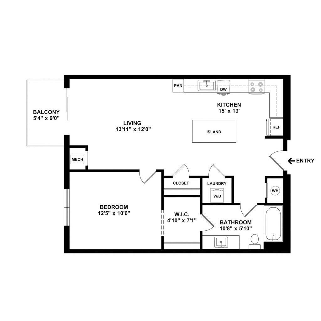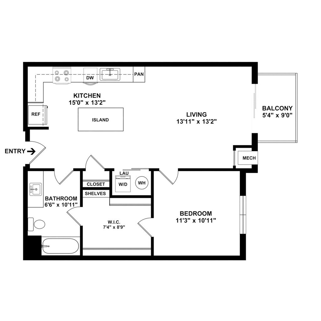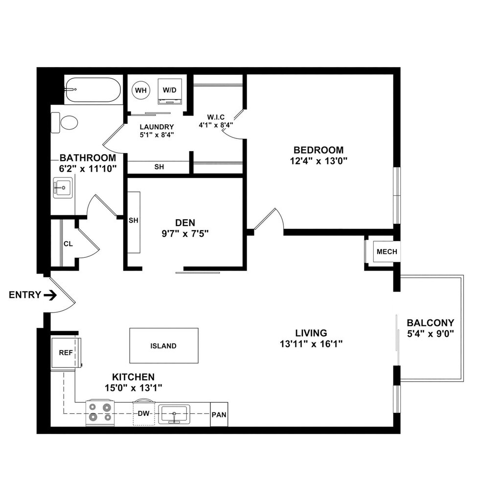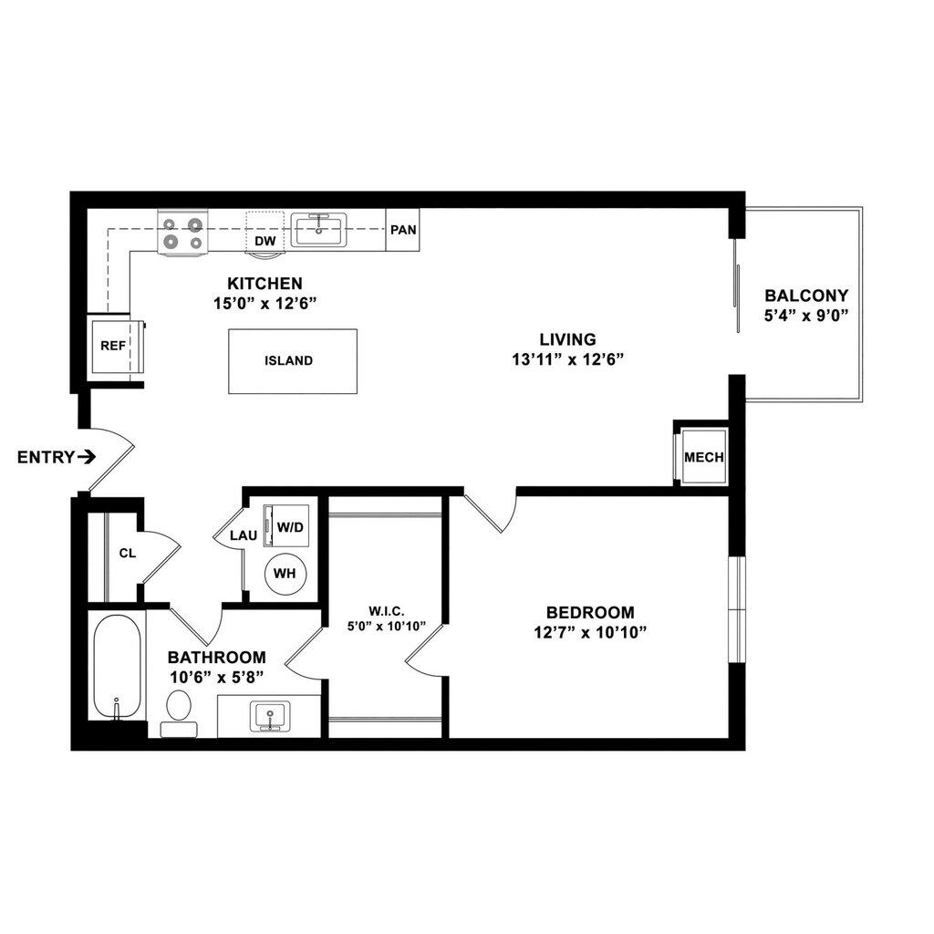 1 Dormitorio, 1 Baño, 895 pies²Disponible AhoraGalería del Modelo