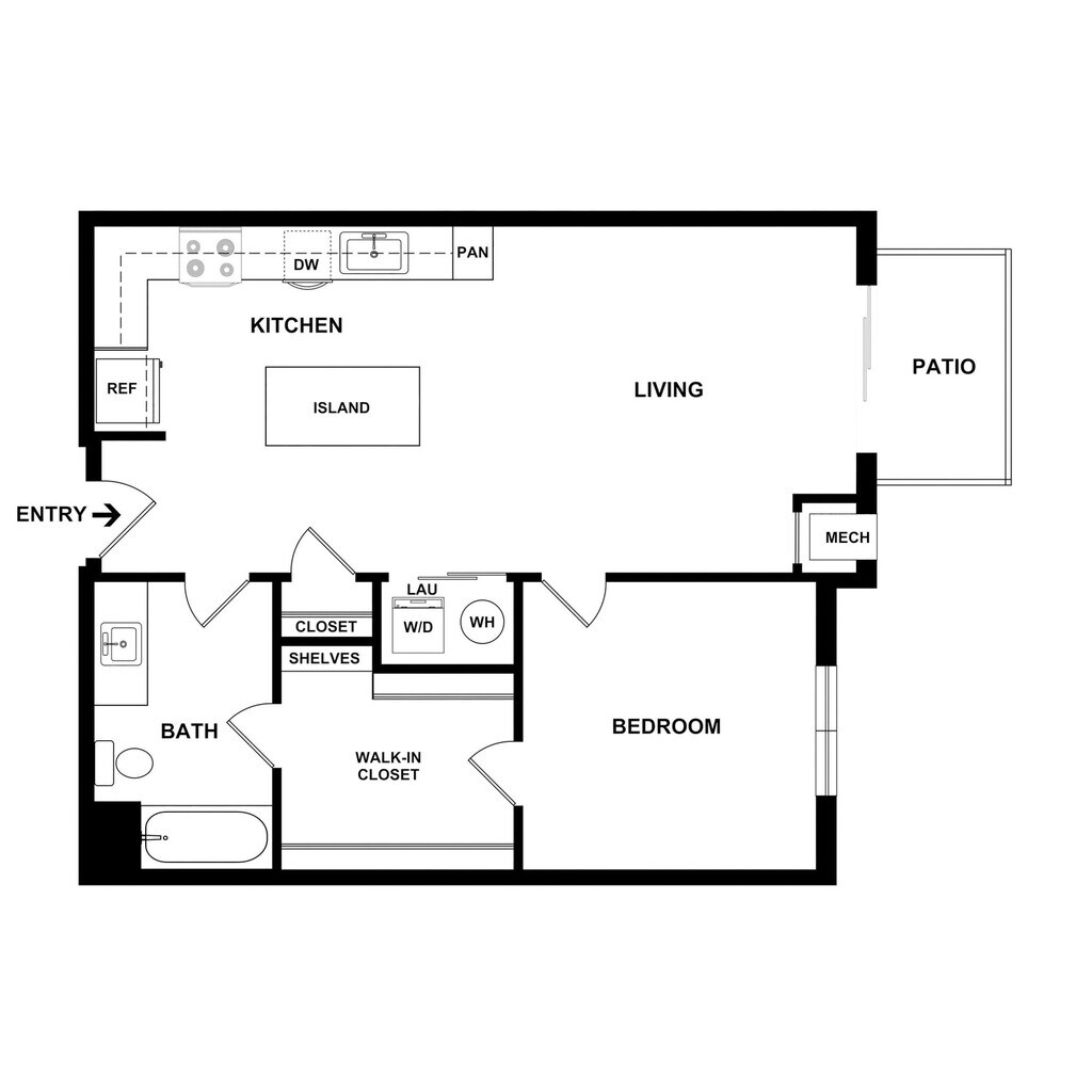 1 Dormitorio, 1 Baño, 921 pies²Disponible AhoraEl más grandeEsta opción tiene las unidades más grandes para este modeloGalería del Modelo