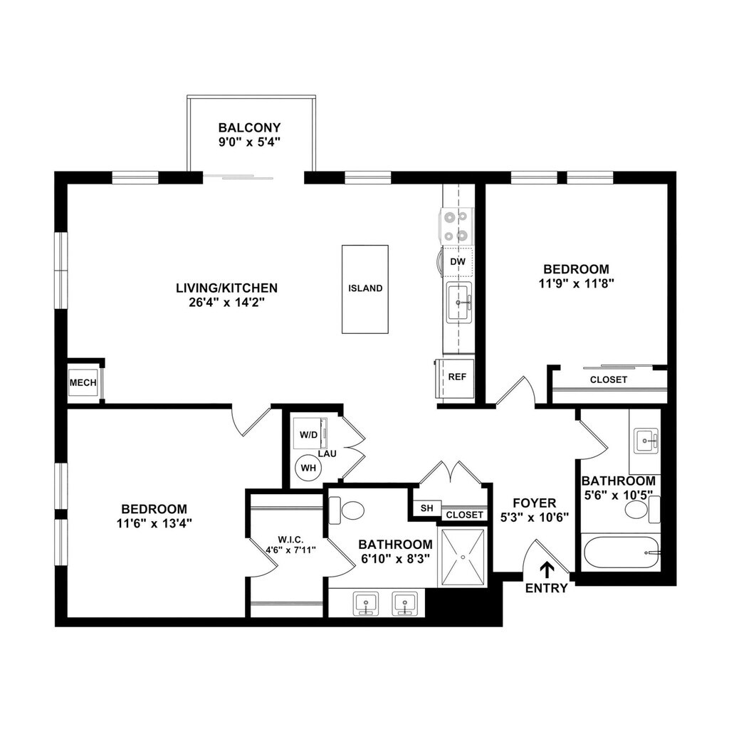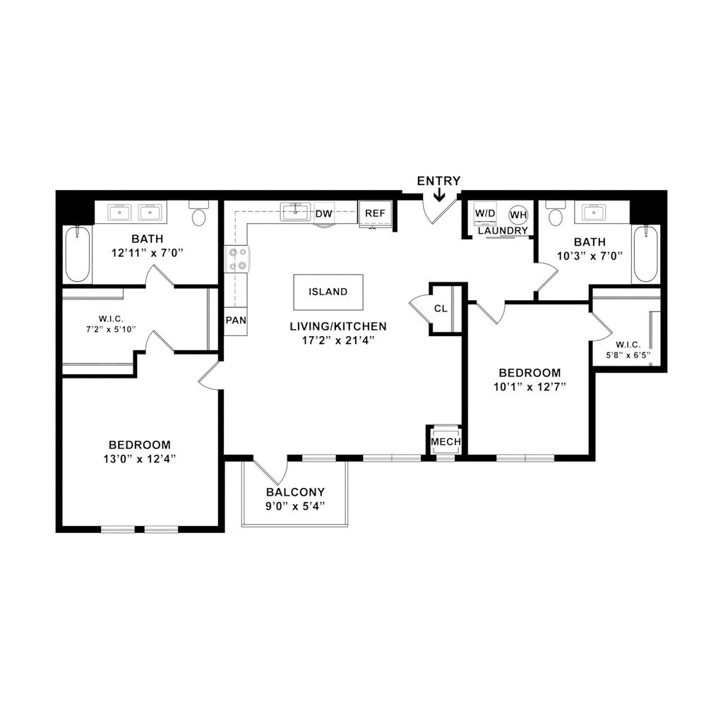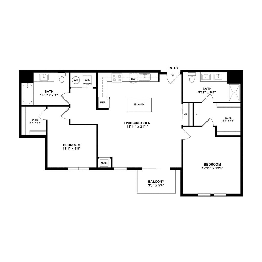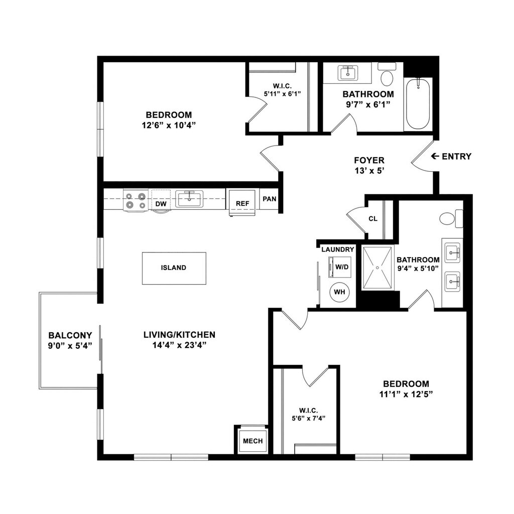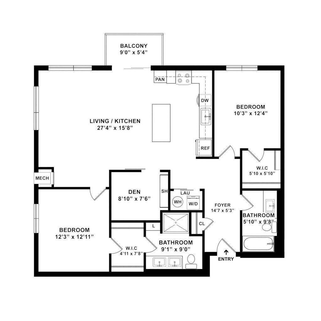 Modelo de apartamento: B7$2,6121 Dormitorio, 1 Baño, 895 sq ftDisponible Ahora![]()