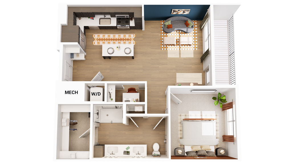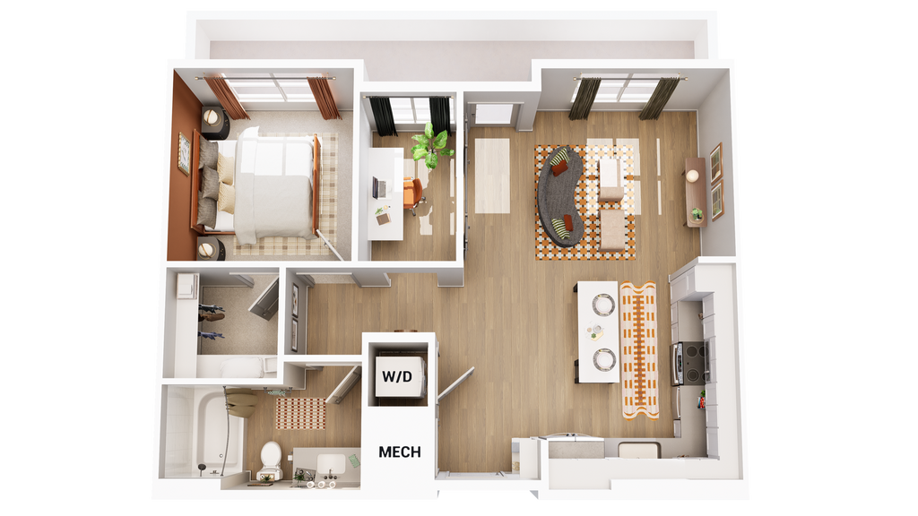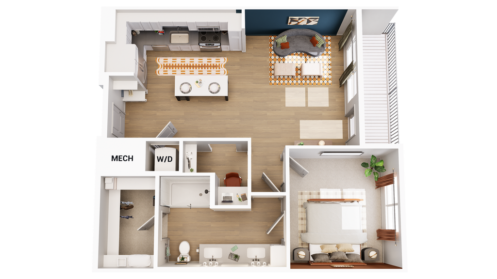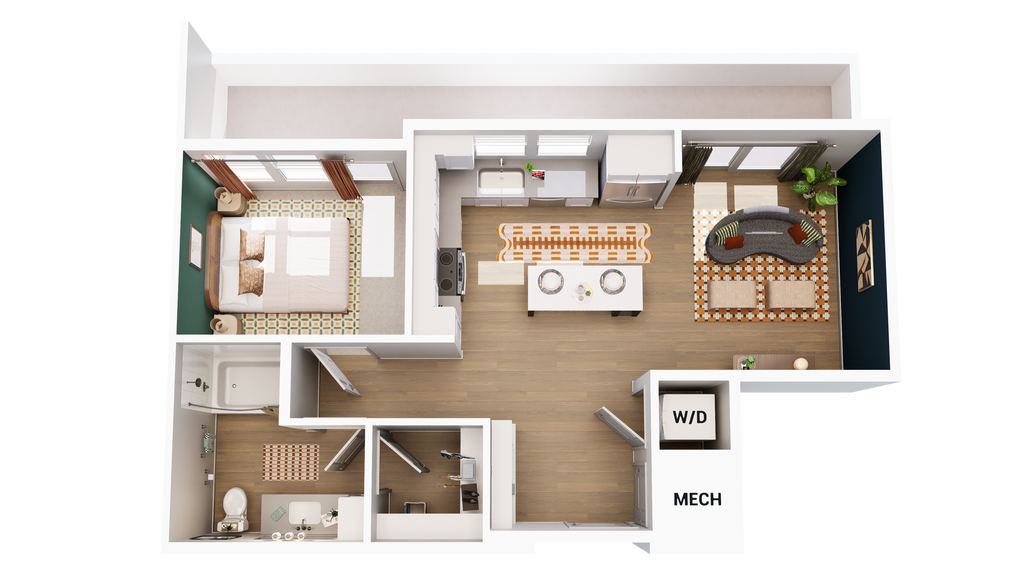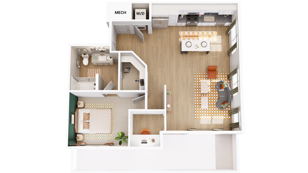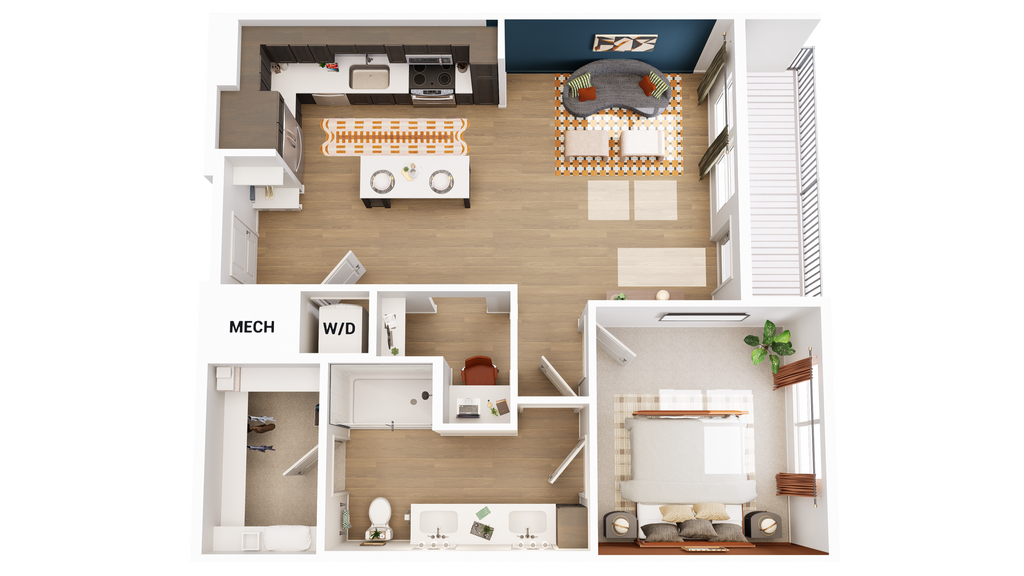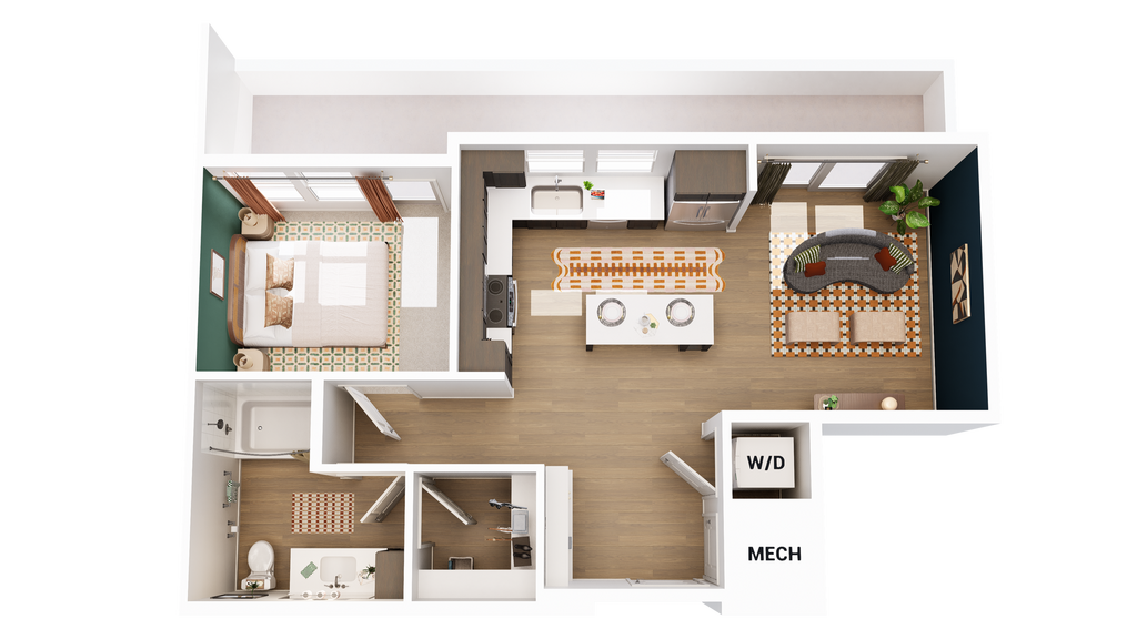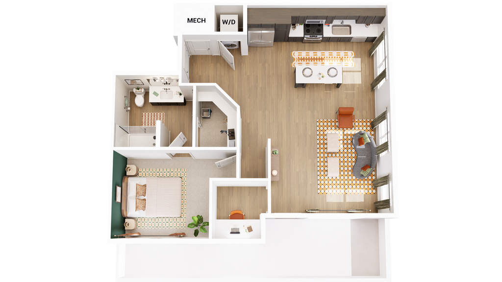 1 Dormitorio, 1 Baño, 671 pies²Disponible AhoraGalería del Modelo