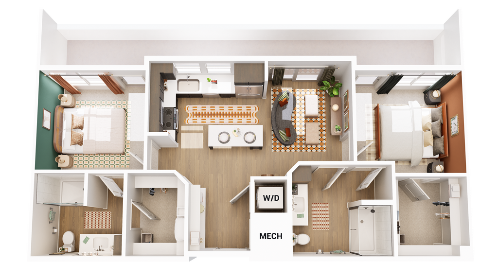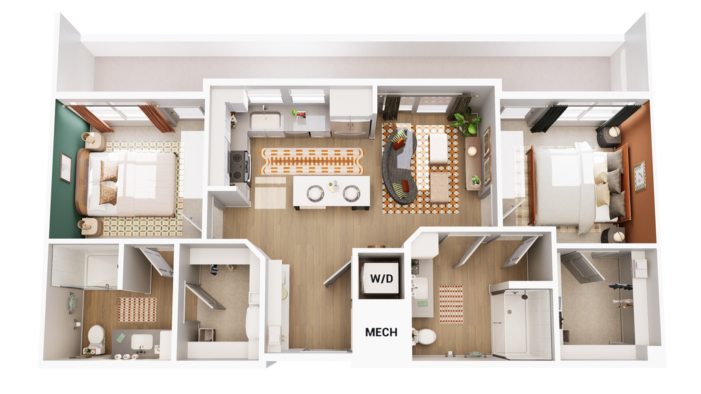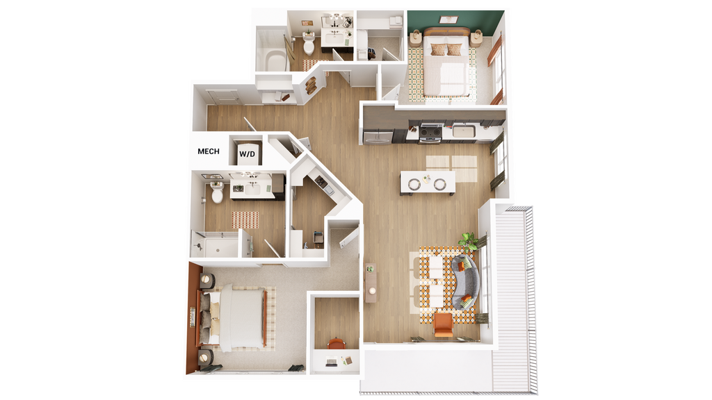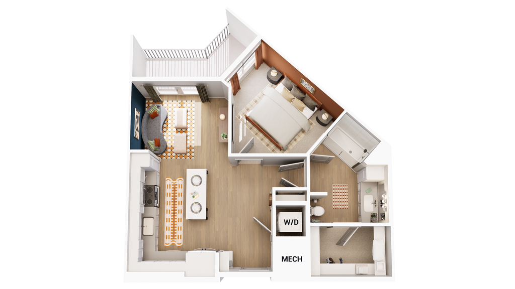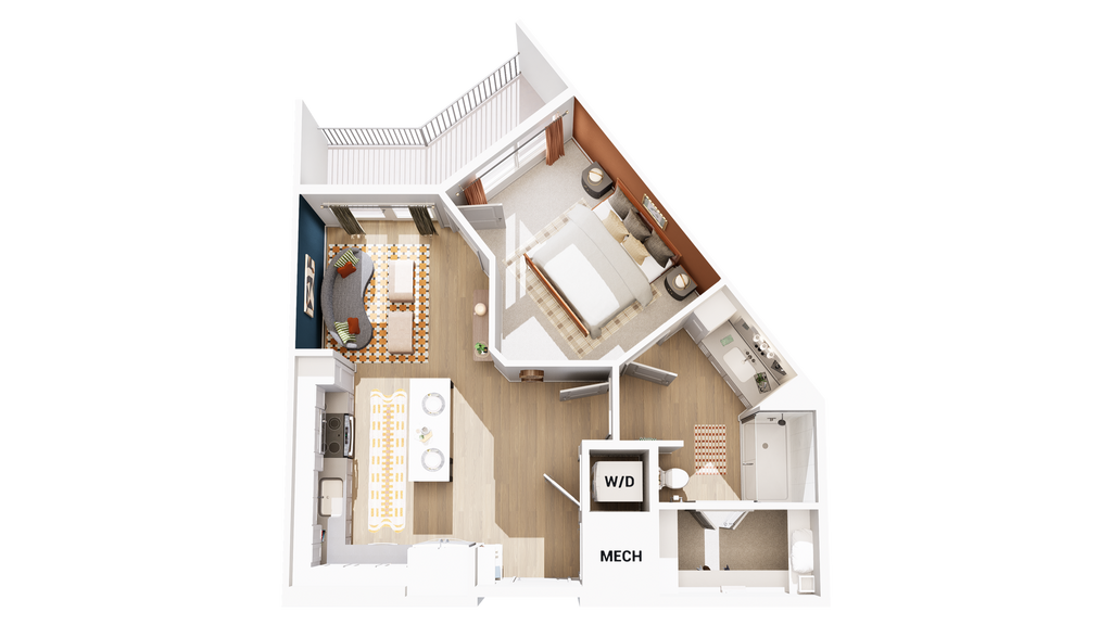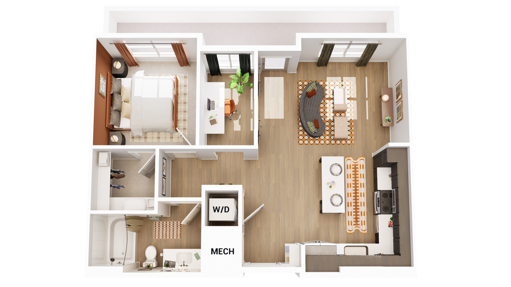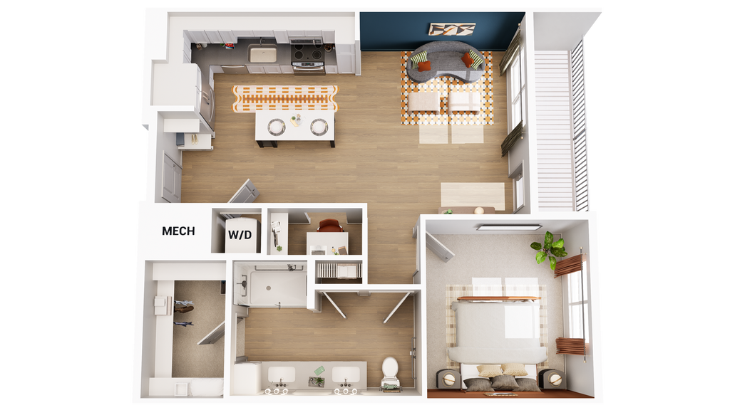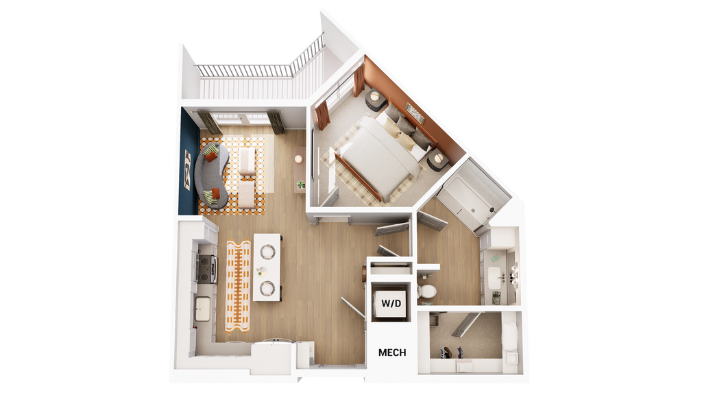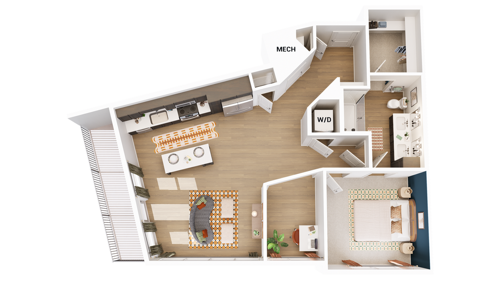 1 Dormitorio, 1 Baño, 671 pies²Disponible AhoraGalería del Modelo