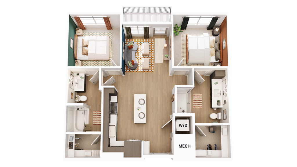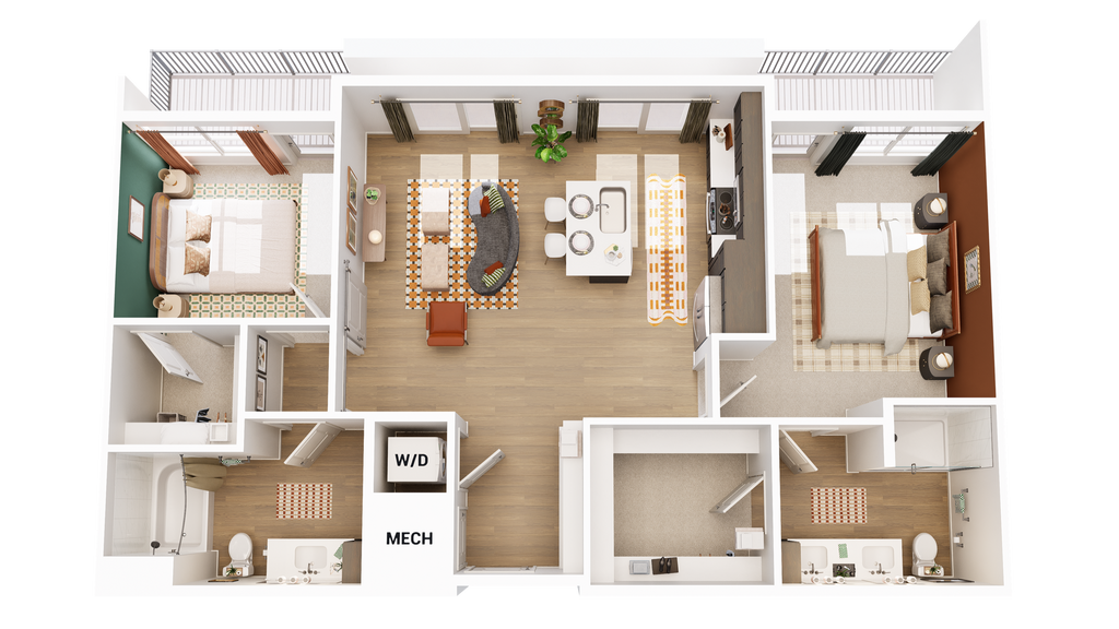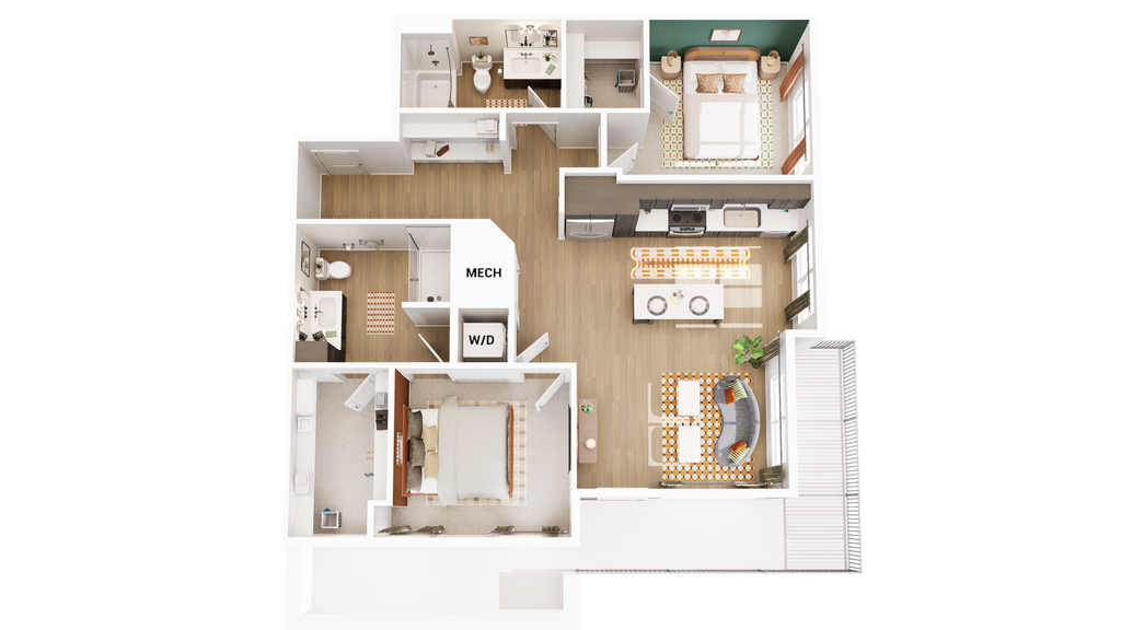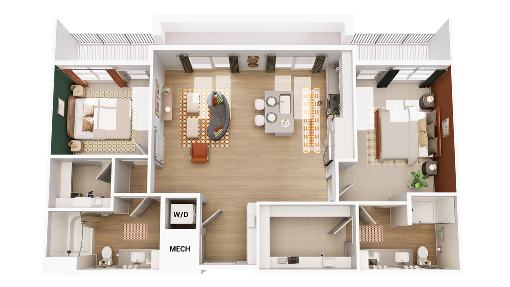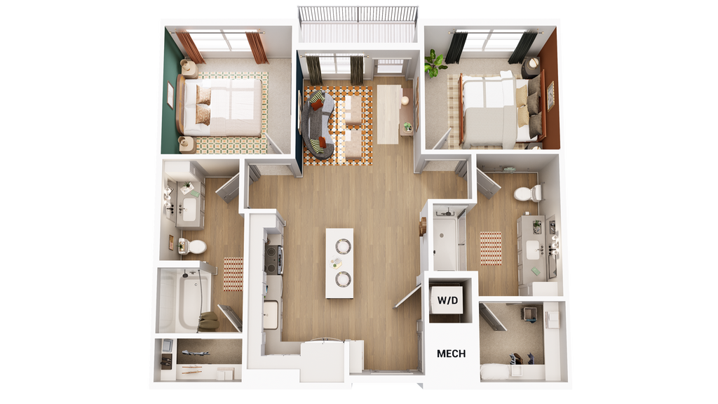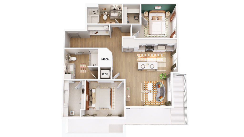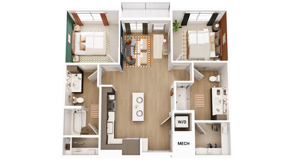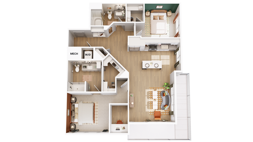 1 Dormitorio, 1 Baño, 671 pies²Disponible AhoraGalería del Modelo