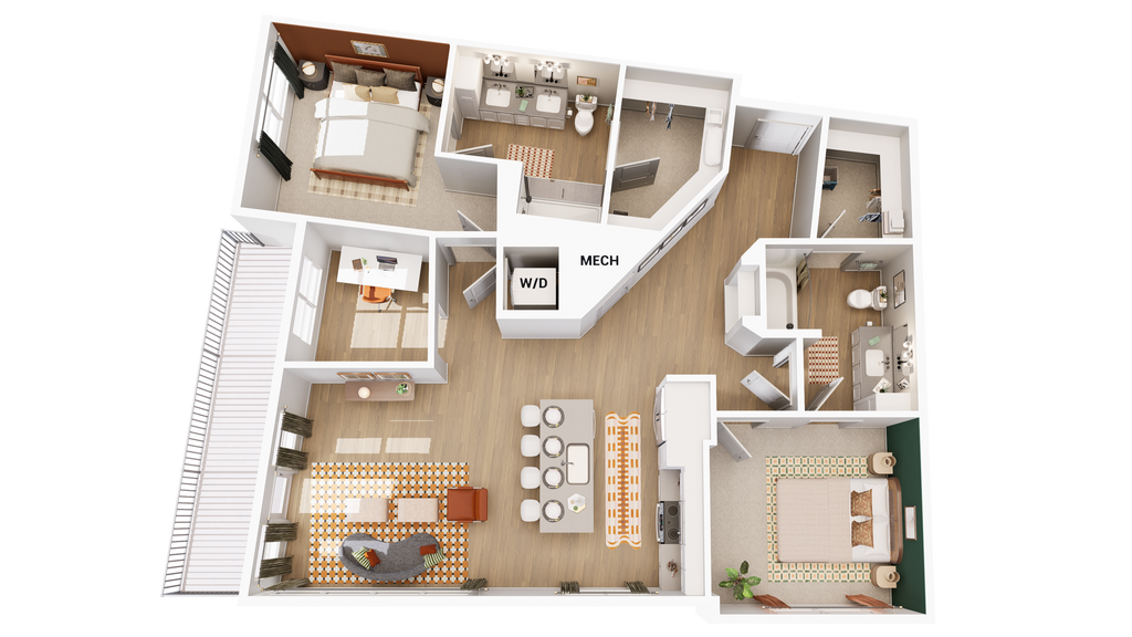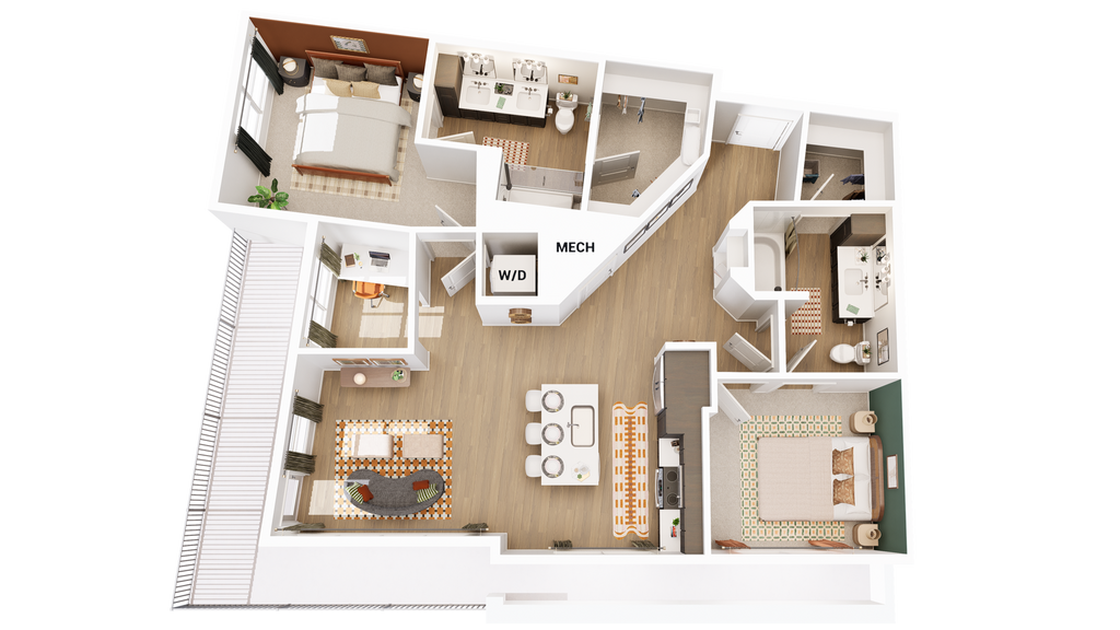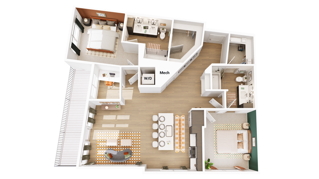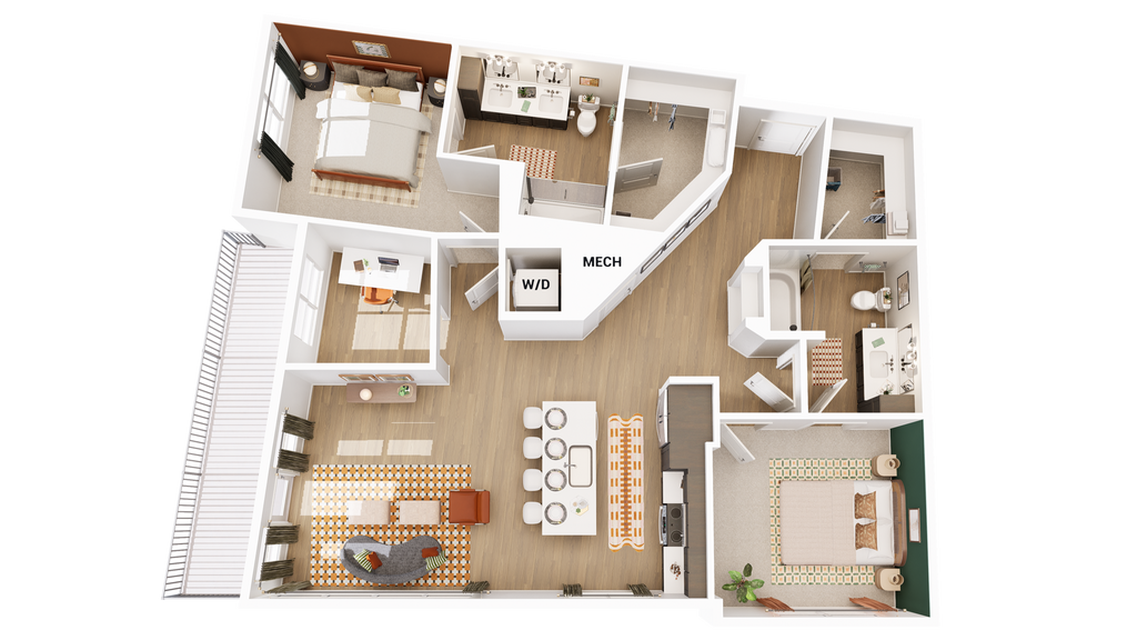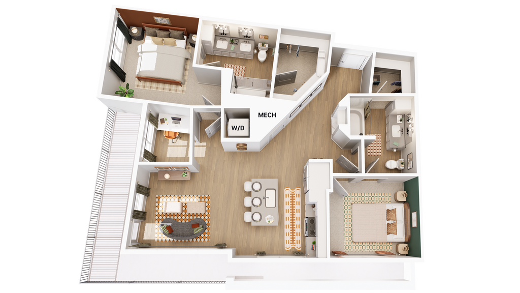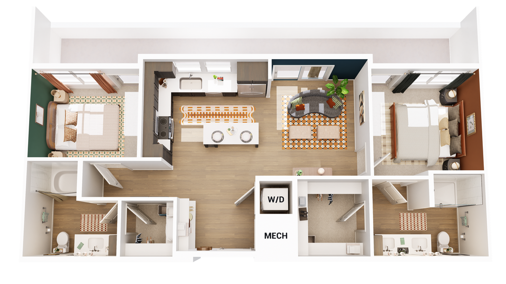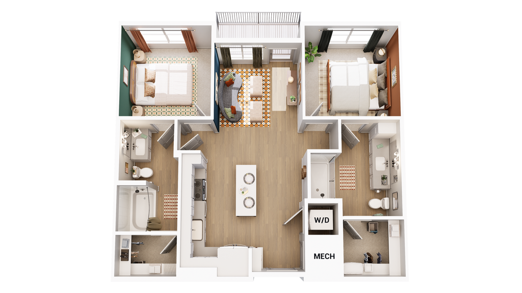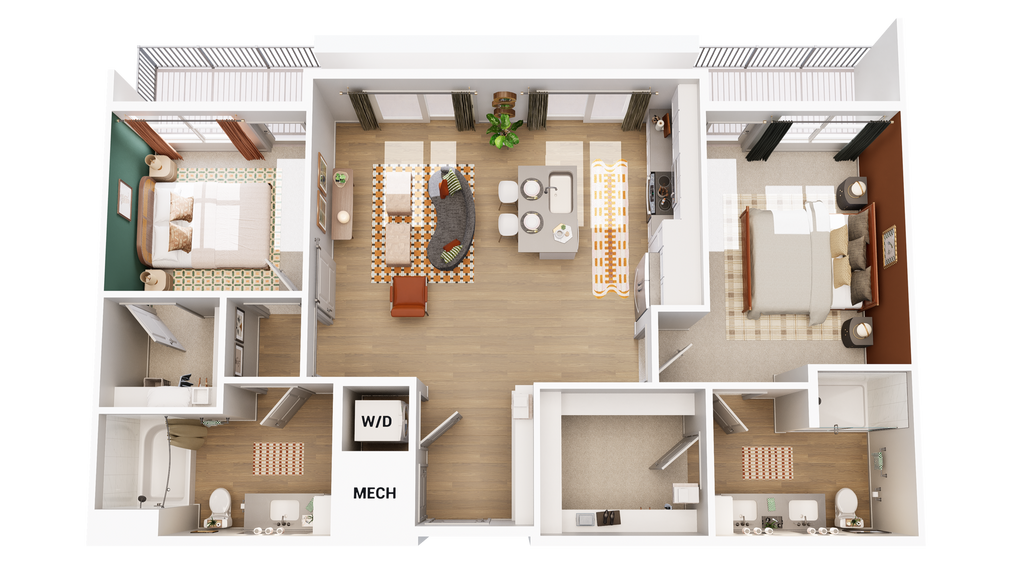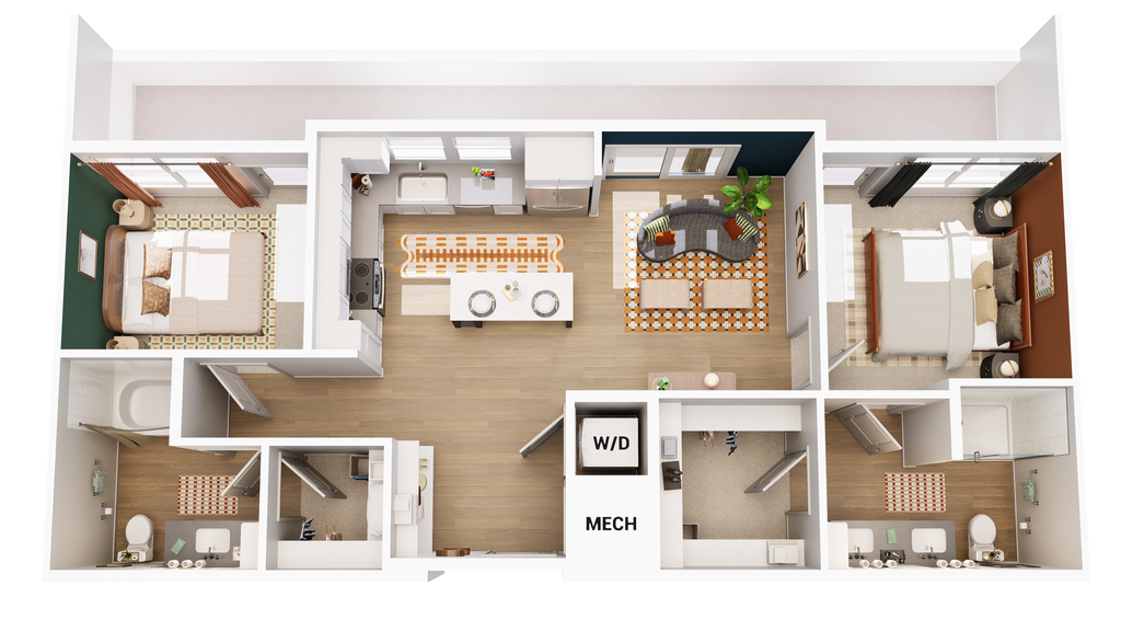 1 Dormitorio, 1 Baño, 671 pies²Disponible AhoraGalería del Modelo