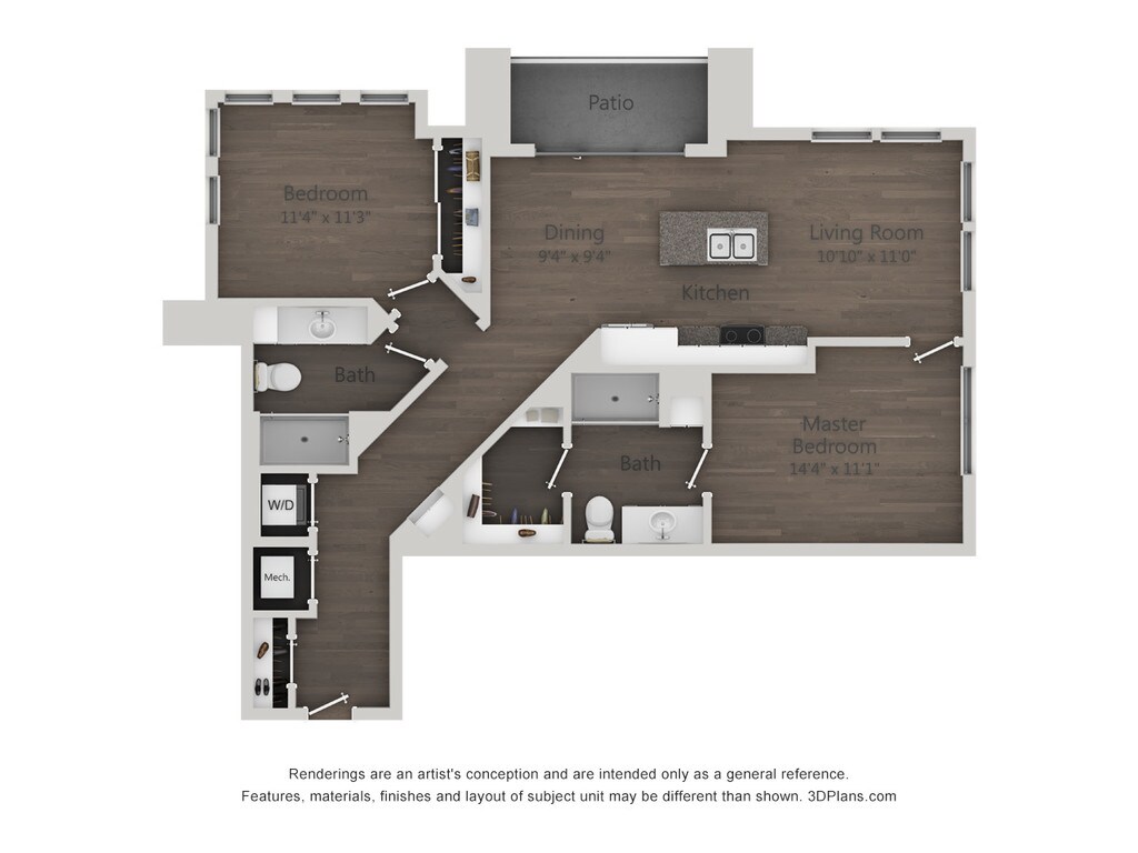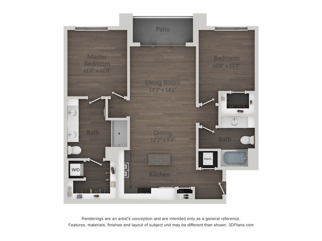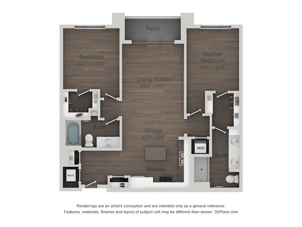 Suede (A4) - Plano 2 Los planos de la planta son una interpretación artística. Todas las dimensiones son aproximadas. Los tamaños o el detalle del producto real y sus especificaciones pueden variar. No todas las características están disponibles en todos los hogares para rentar. Los precios y la disponibilidad están sujetos a cambios. El alquiler que se muestra es mensual. Se pueden aplicar ciertos cargos, por ejemplo, entrega de paquetes, recolección de basura, agua, servicios, etc. Depositos varian. Consulta a un representante para conocer detalles.