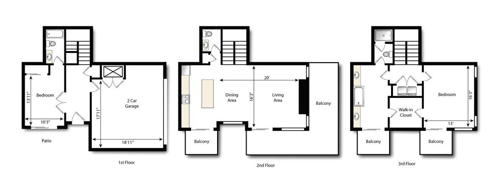 Ellsworth 2 bed 3 bath - Plano 1 3 Dormitorios