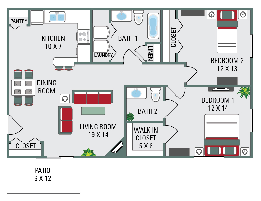 Modelo de apartamento: The Silverstone - 1130-1155 SqftDesde $1,2152 Dormitorios, 1.5 Baños, 1130-1165 sq ftDisponible Ahora![]()