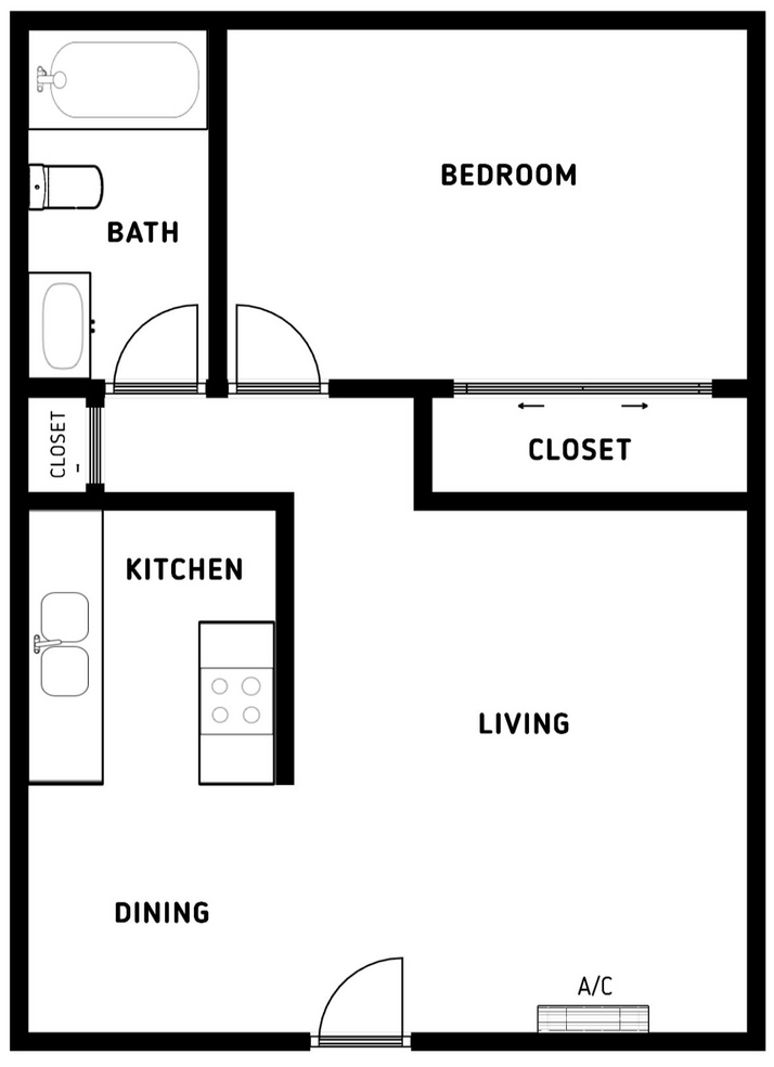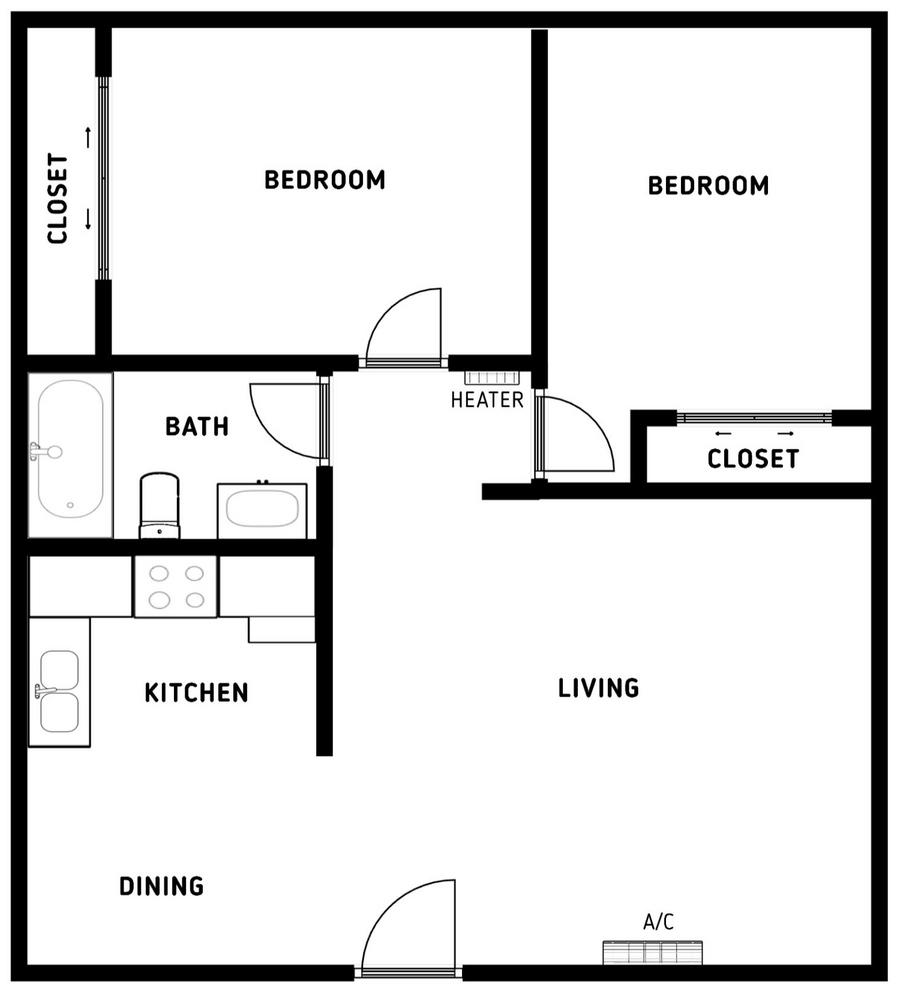 2 Dormitorios, 1 Baño, 698 pies²Galería del Modelo
