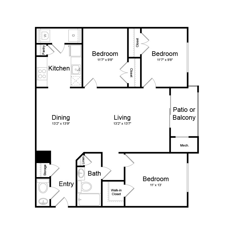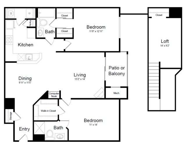 Modelo de apartamento: 2 Bed | 2 Bath - B2DLlame para Precios2 Dormitorios, 2 Baños, 1303 sq ftNo Disponible![]()