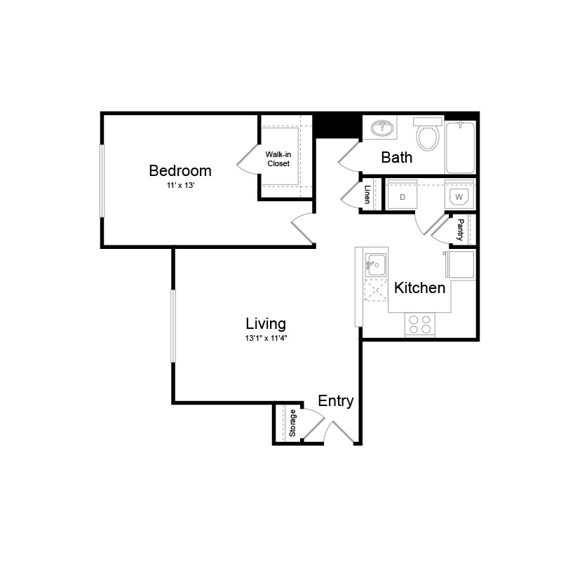 1 Dormitorio, 1 Baño, 1001 pies²El más grandeEsta opción tiene las unidades más grandes para este modeloGalería del Modelo