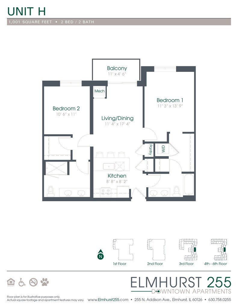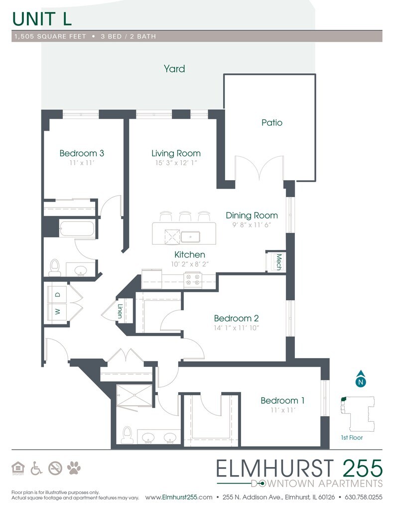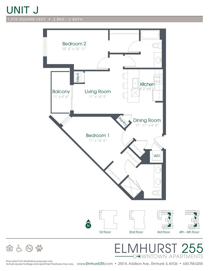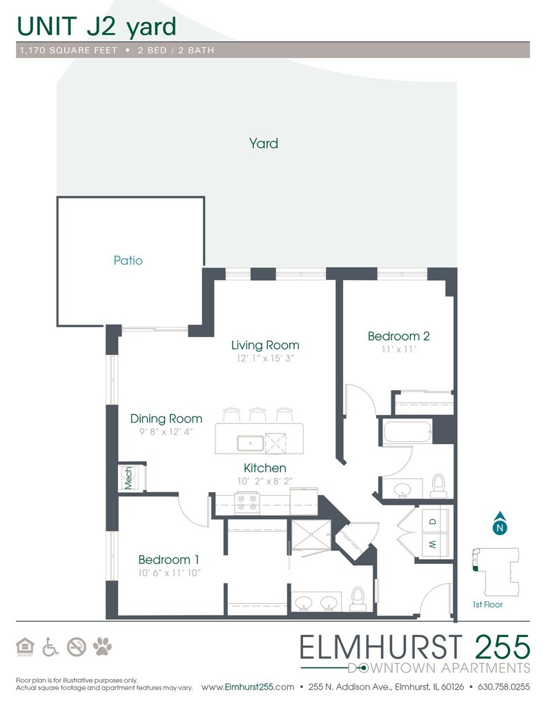 Realiza un recorrido virtual en bit.ly/Elmhurst255Tour. Elmhurst 255 es un nuevo complejo de apartamentos de lujo en el corazón del centro de Elmhurst, a una corta distancia a pie de supermercados, la estación de Metra (2.5 cuadras), tiendas, teatros, museos, restaurantes y lugares de vida nocturna. Lleno de comodidades, Elmhurst 255 dispone de estacionamiento de interior climatizado, un gimnasio con bicicletas de spinning, un amplio patio con cancha de bochas y piscina climatizada, un teatro, sala comunitaria, comedor privado, cafetería de negocios, servicio de café las 24 horas, administración y mantenimiento en el lugar y mucho más. Cada apartamento cuenta con un plano de planta abierto que incluye cocinas gourmet con encimeras de cuarzo y electrodomésticos de acero inoxidable, pisos de tablones de madera en las habitaciones, armarios de gran tamaño, lavadora/secadora en cada apartamento, balcones privados y mucho más.