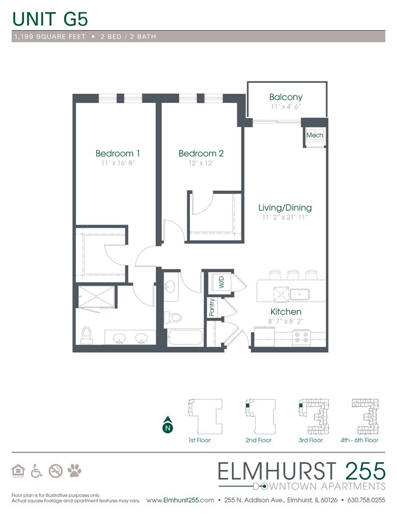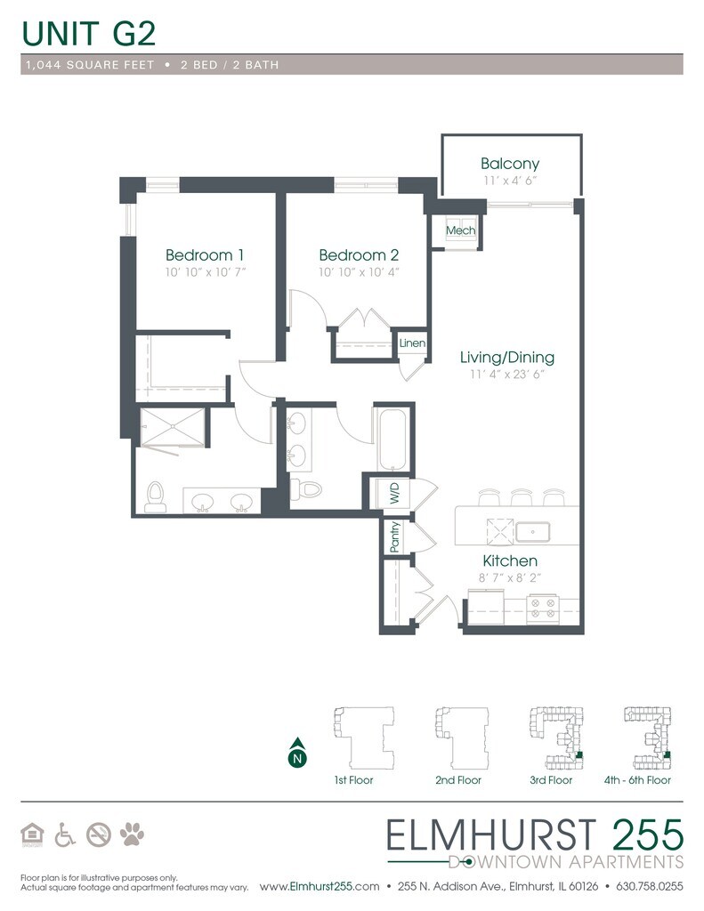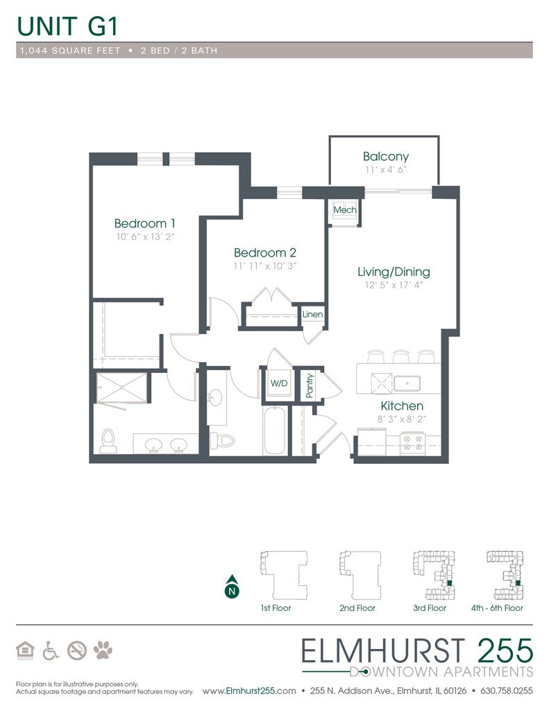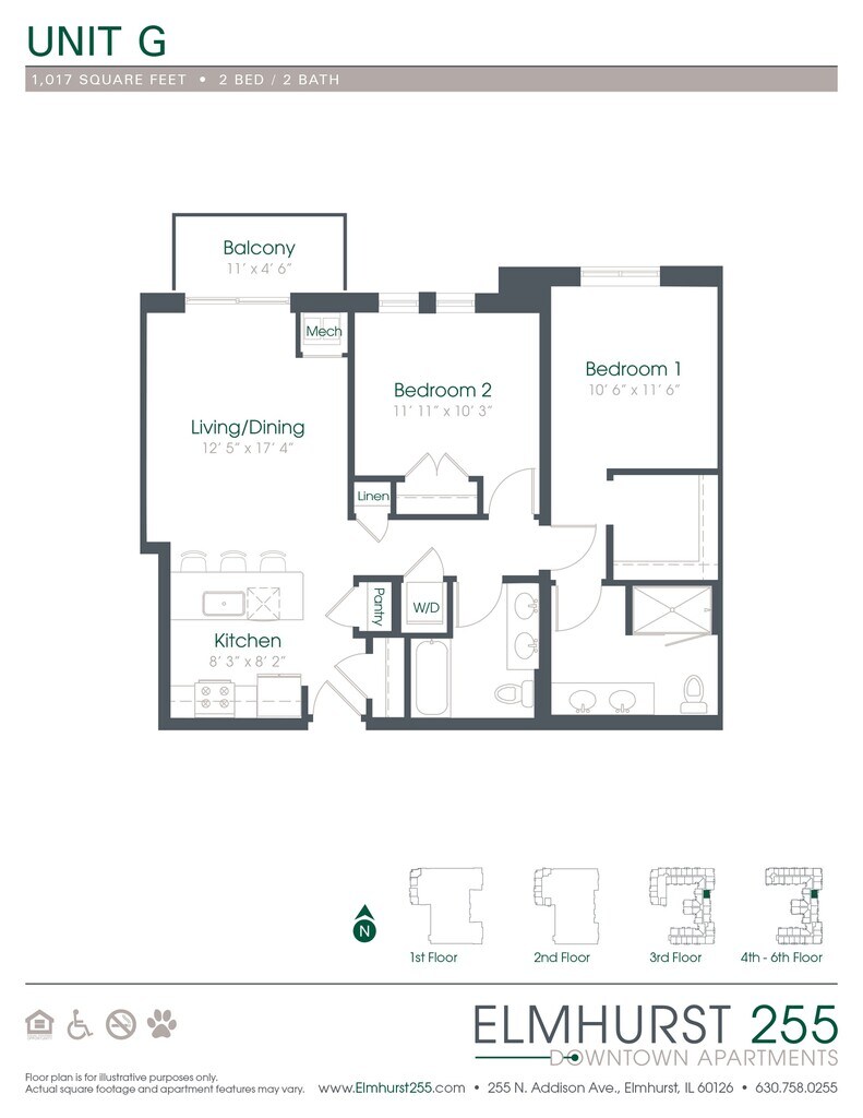 Realiza un recorrido virtual en bit.ly/Elmhurst255Tour. Elmhurst 255 es un nuevo complejo de apartamentos de lujo en el corazón del centro de Elmhurst, a una corta distancia a pie de supermercados, la estación de Metra (2.5 cuadras), tiendas, teatros, museos, restaurantes y lugares de vida nocturna. Lleno de comodidades, Elmhurst 255 dispone de estacionamiento de interior climatizado, un gimnasio con bicicletas de spinning, un amplio patio con cancha de bochas y piscina climatizada, un teatro, sala comunitaria, comedor privado, cafetería de negocios, servicio de café las 24 horas, administración y mantenimiento en el lugar y mucho más. Cada apartamento cuenta con un plano de planta abierto que incluye cocinas gourmet con encimeras de cuarzo y electrodomésticos de acero inoxidable, pisos de tablones de madera en las habitaciones, armarios de gran tamaño, lavadora/secadora en cada apartamento, balcones privados y mucho más.