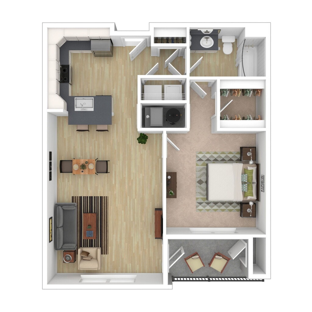 1 Dormitorio, 1 Baño, 837 pies²Disponible AhoraGalería del Modelo